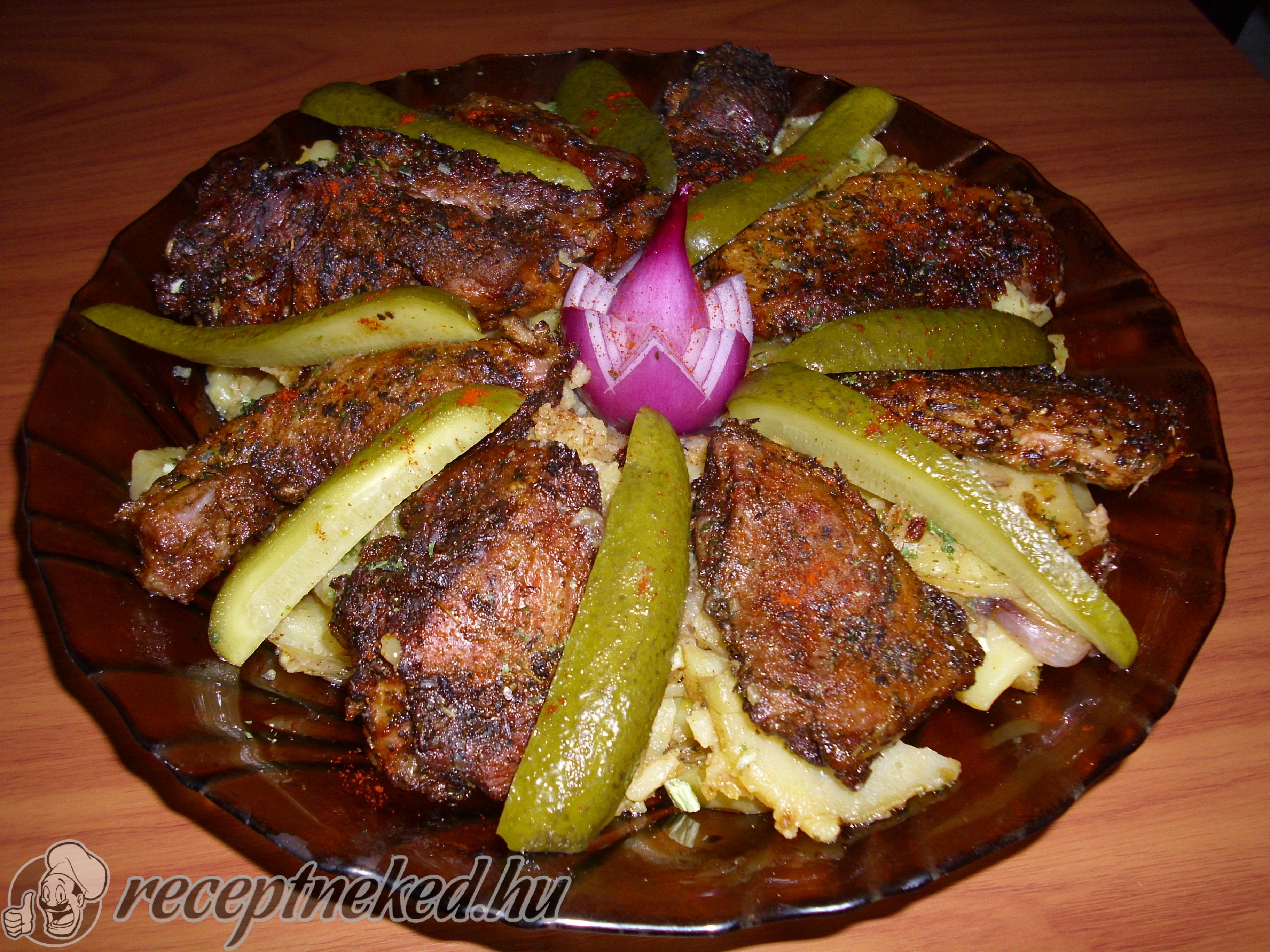 [box style=”info”]Az elkészítési időben nincs benne a pácolás, amit előző este végzünk. De mindenképpen hasznos, mert nagyon omlós, finom lett a hús sütés után.[/box]