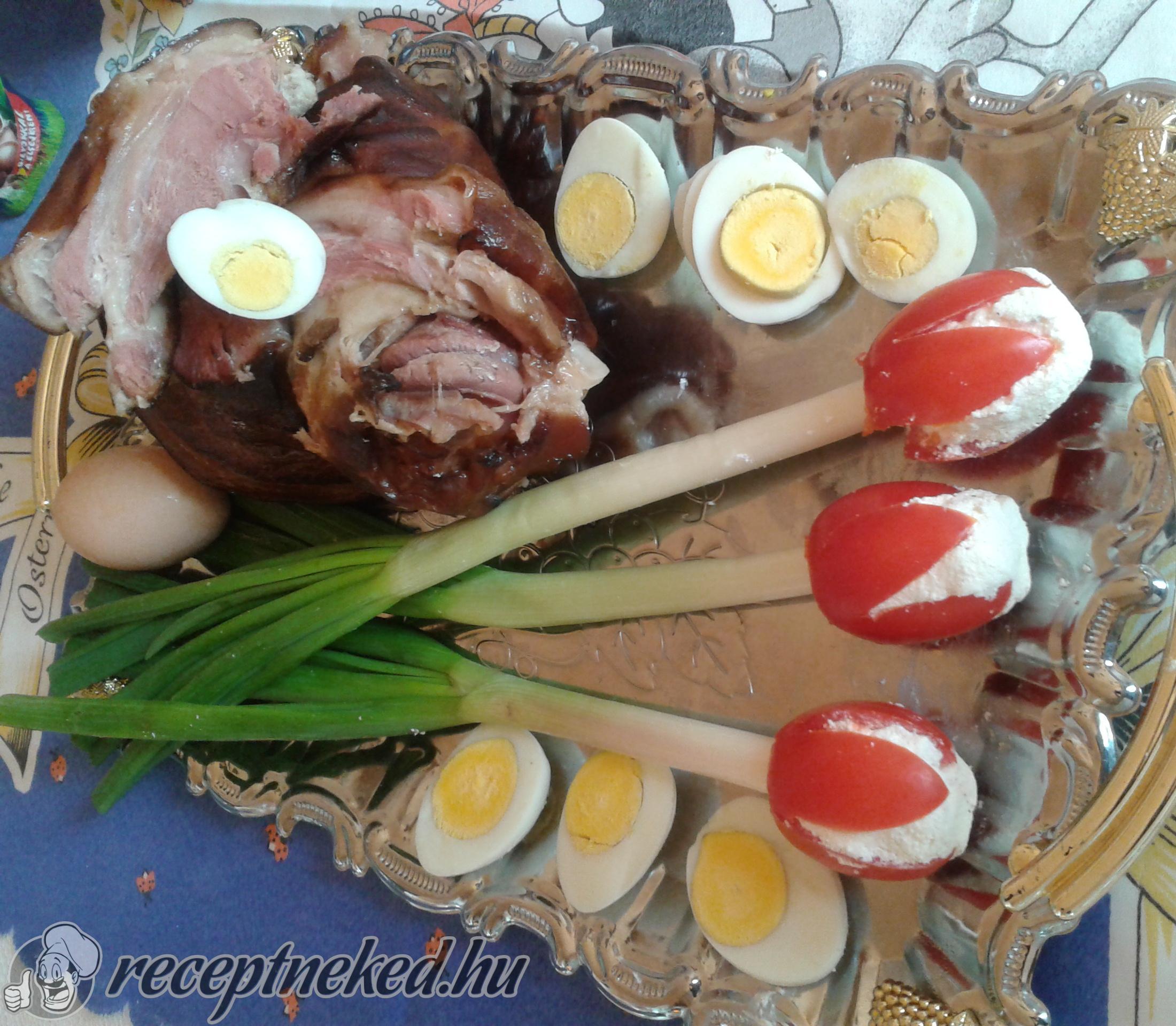 Egy szép ünnepi tálcára tesszük a csülköt, a tojásokat és a gyönyörű paradicsom tulipánokat, és várjuk a vendégeket!