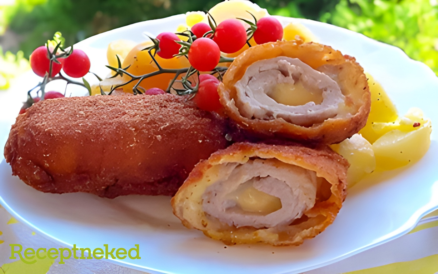 A roládot lisztbe, majd tejjel elkevert felvert tojásba, végül zsemlemorzsába forgatjuk.