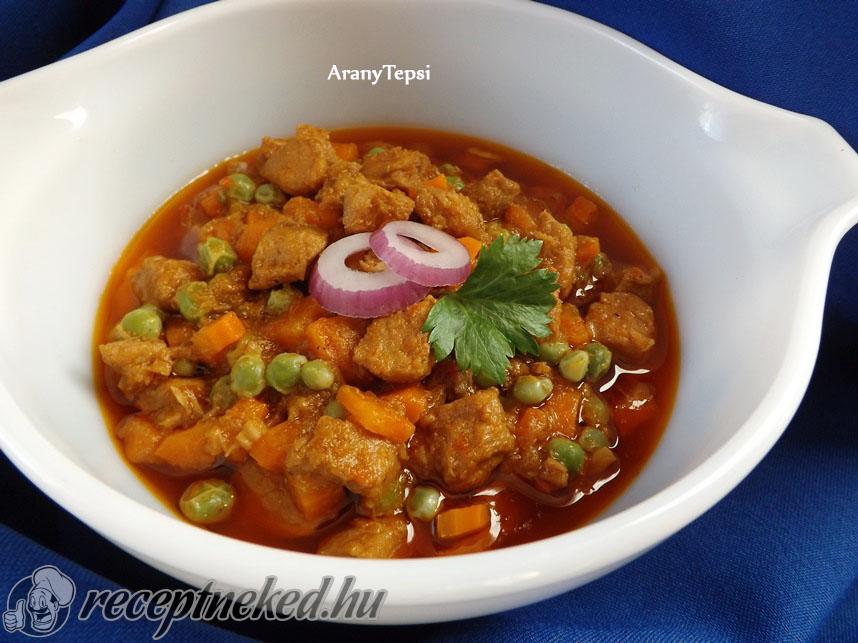 Ha a zöldségek is megfőttek, levesszük a tűzről, és melegen kínáljuk.