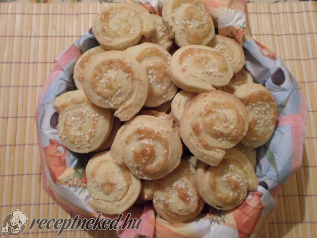 Másfél centiméteres szeletekre vágjuk és sütőpapíros tepsire tesszük a csigákat.