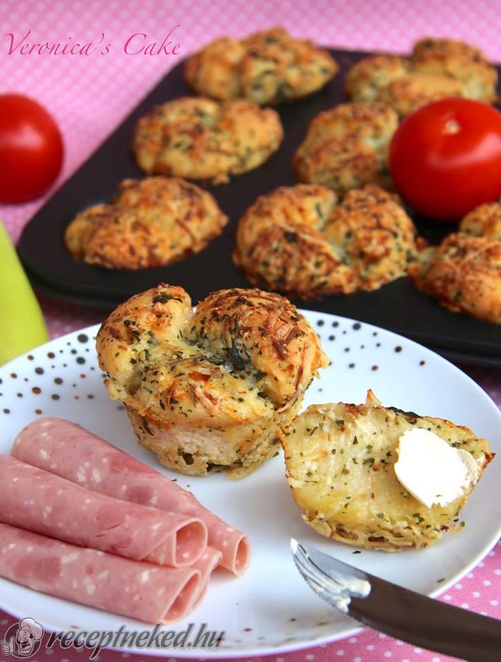 Mielőtt kiszedjük, egy kicsit hagyjuk hűlni, de még melegen szedjük ki a formából. Sajtkrémmel, sonkával tálaljuk.