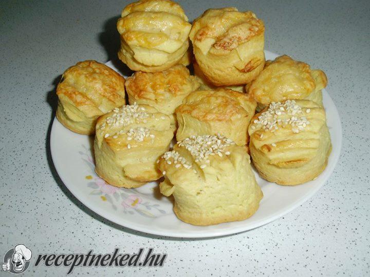 A tetejét felvert tojással lekenjük, (szezámmaggal vagy reszelt sajttal is megszórhatjuk), pogácsaszaggatóval kiszúrjuk és 180 fokra melegített sütőben 30 perc alatt megsütjük.