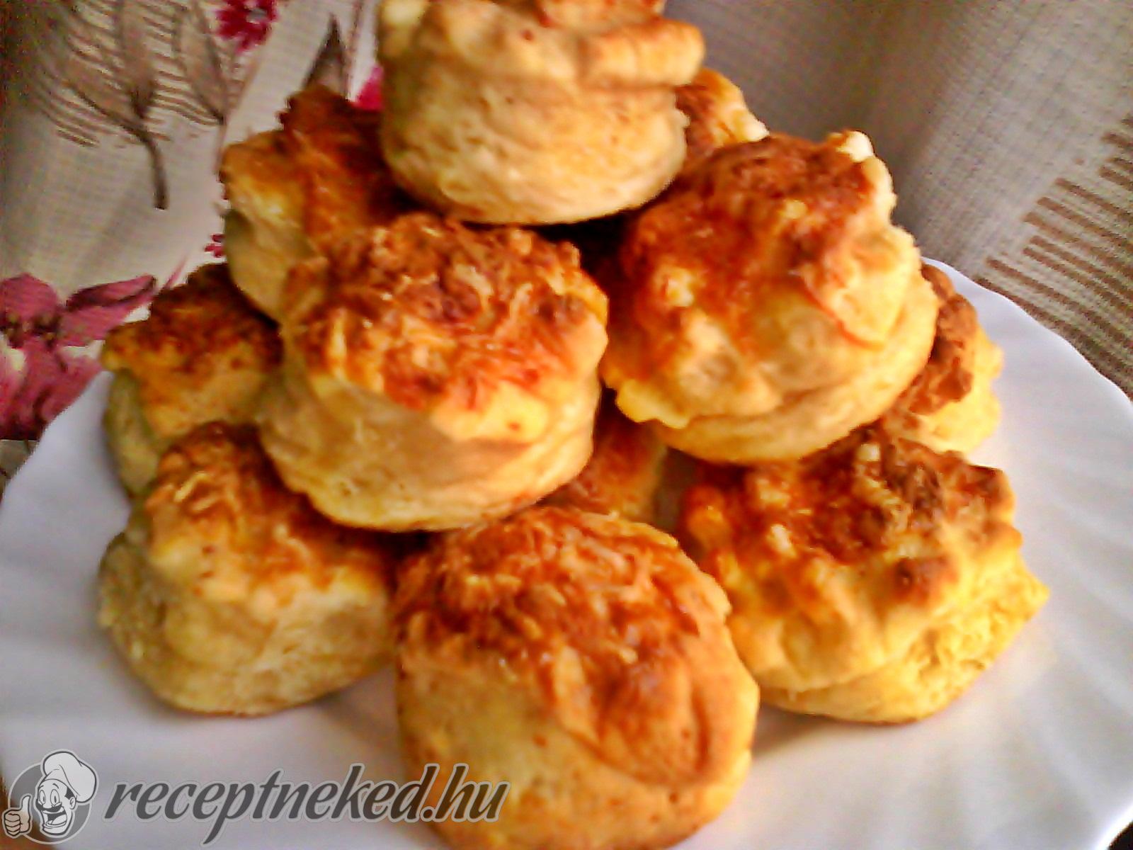 Közepes méretű pogácsaszaggatóval kiszaggatjuk a tésztát, és a pogácsákat sütőpapírral bélelt tepsibe helyezzük. Felvert egész tojással lekenjük a tetejüket, majd megszórjuk a reszelt sajttal.