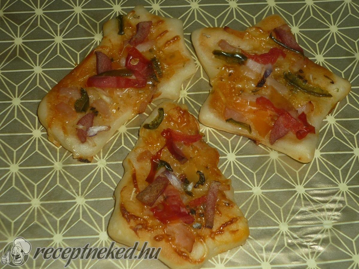 A szalámikat (lehet több féle is) kis csíkokra vágjuk és a zöldség féléket is. Elhelyezzük a pizzánkon, minél színesebb, annál jobban mutat, majd sütjük.