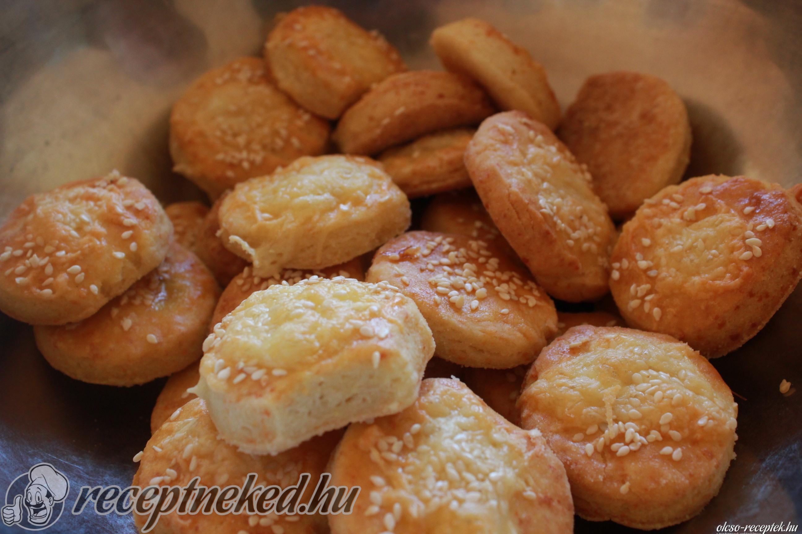 Kimérünk 30 dkg lisztet, majd belemorzsoljuk az élesztőt, belekeverjük a sót, belemorzsoljuk a zsírt, és beleszórjuk a reszelt sajtot. Összedolgozzuk tejföllel és tojással. Ha szükséges, még hozzáadunk lisztet. Harminc percig állni hagyjuk, majd négy alkalommal hajtogatjuk, minden hajtás között várunk negyed órát. Hajtogatás: kinyújtjuk, jobbról balra félbehajtjuk, majd balról jobbra, aztán fentről le, és lentről fel. A hajtogatások után körülbelül 2 cm vastagra nyújtjuk, majd pogácsaszaggatóval kiszaggatjuk. A tetejét megkenjük tojással, megszórjuk reszelt sajttal, esetleg köménymaggal. Előmelegített sütőben 180 fokon körülbelül 20 percig sütjük.