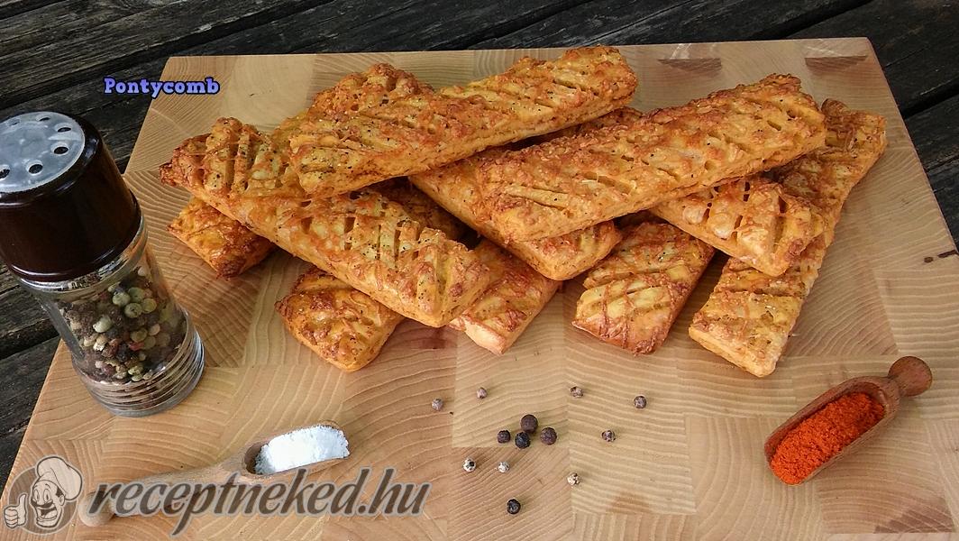 A tésztát stangli méretekre vágjuk és sütőpapírral bélelt lemezre téve kb. 15-18 perc alatt megsütjük.