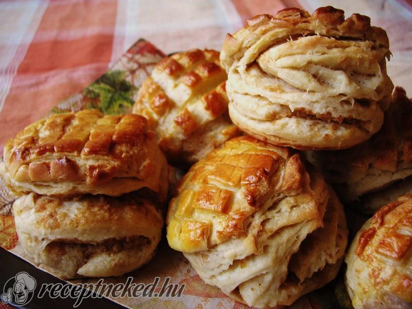 Egy nagyobb tálba szitáljuk bele a kétféle lisztet, keverjük bele a sót, és morzsoljuk el benne a vajat. Ezután adjuk hozzá a szoba hőmérsékletű tojást, a tejfölt és a cukros tejben felfuttatott élesztőt. Kb tíz perc alatt dagasszunk hólyagosra tésztát és letakarva, meleg helyen kb. egy óra alatt kelesszük a duplájára.