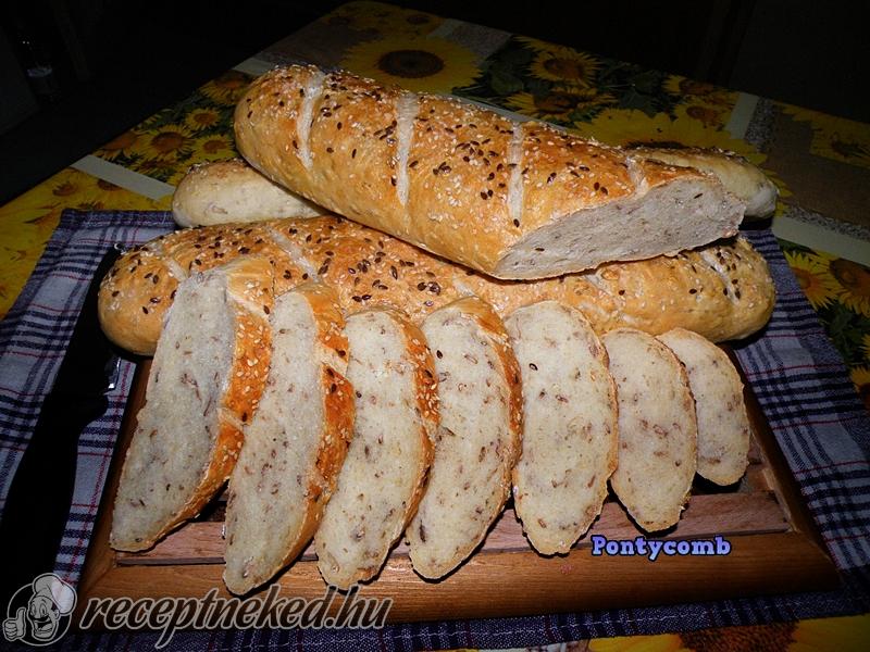 Ezután a harmadokat a kezünkkel kissé lelapítjuk és hosszában feltekerve bagettet formázunk belőle.