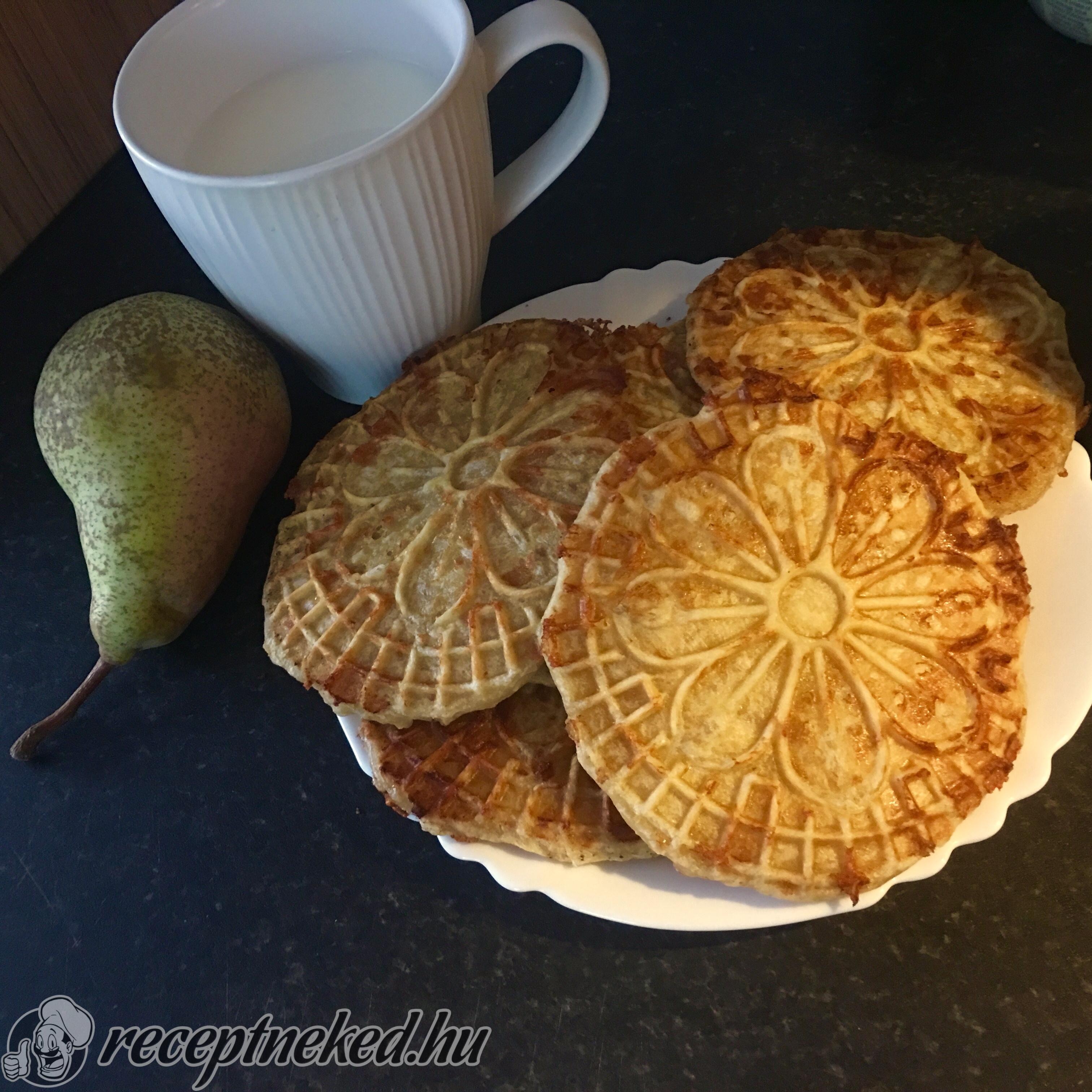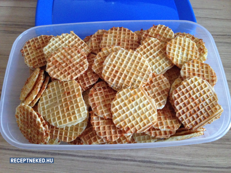 Összedolgozzuk a hozzávalókat, majd gombócokat formálunk a tésztából. Lisztezett deszkán vékonyra kinyújtjuk és tetszőleges nagyságú köröket szúrunk ki belőle. Gofrisütőbe tesszük és szép pirosra, ropogósra sütjük.