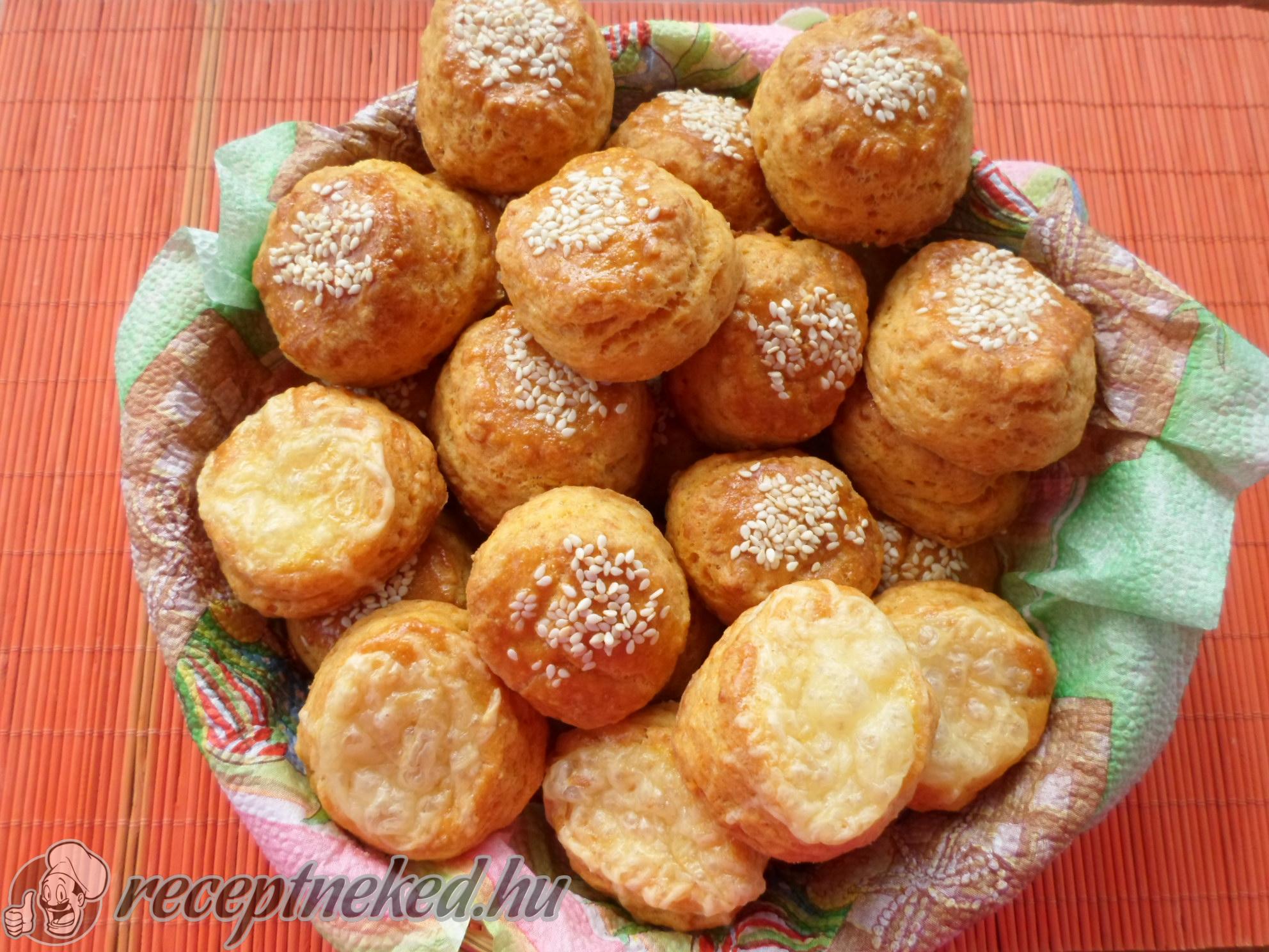 Sütőpapírral bélelt tepsibe sorakoztatjuk, a tojások sárgájával lekenjük. Egyik részét szezámmaggal, másik részét reszelt sajttal szórjuk meg.