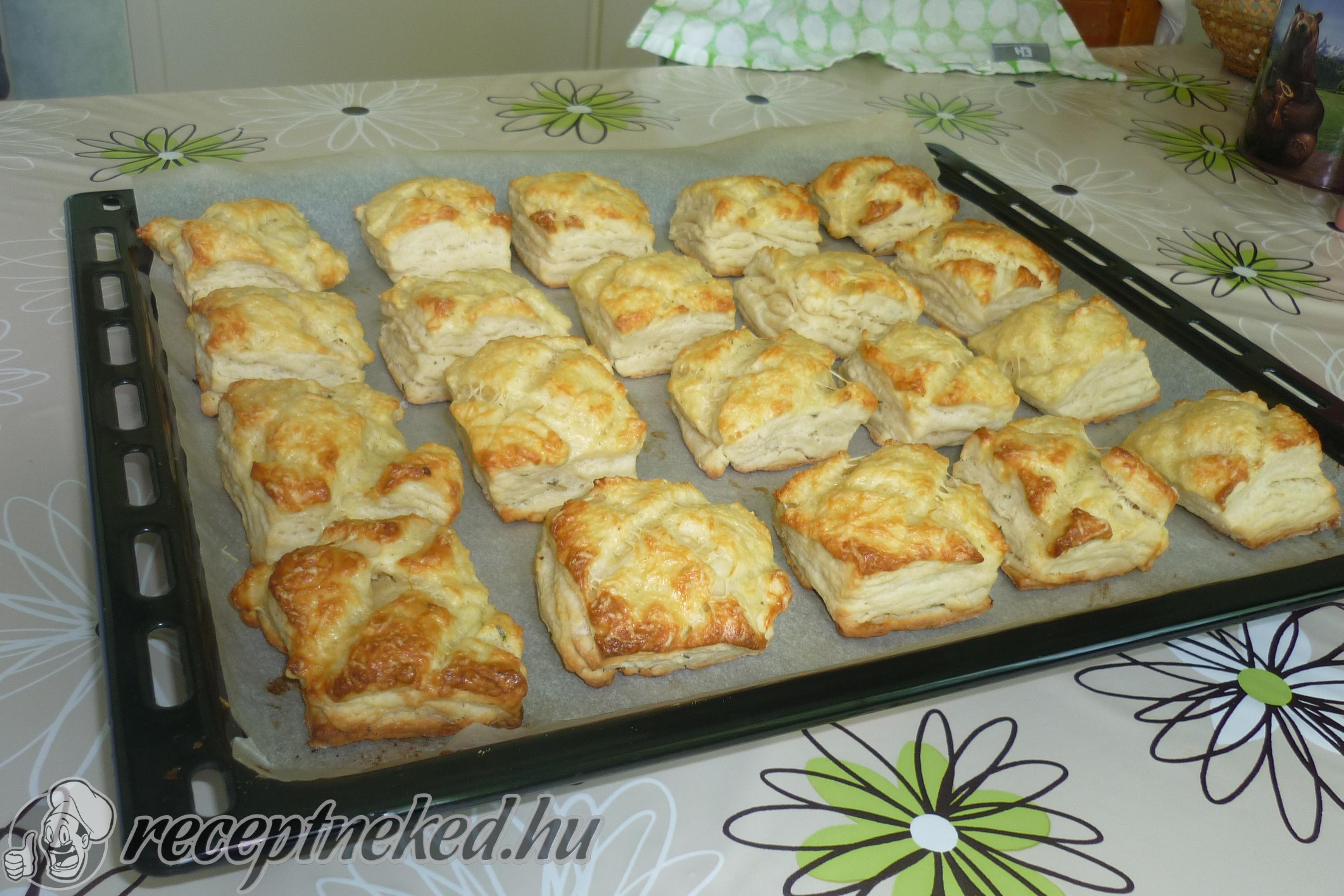 A tetejét átlósan megvagdaljuk, megkenjük tojással és megszórjuk reszelt (Edámi) sajttal.