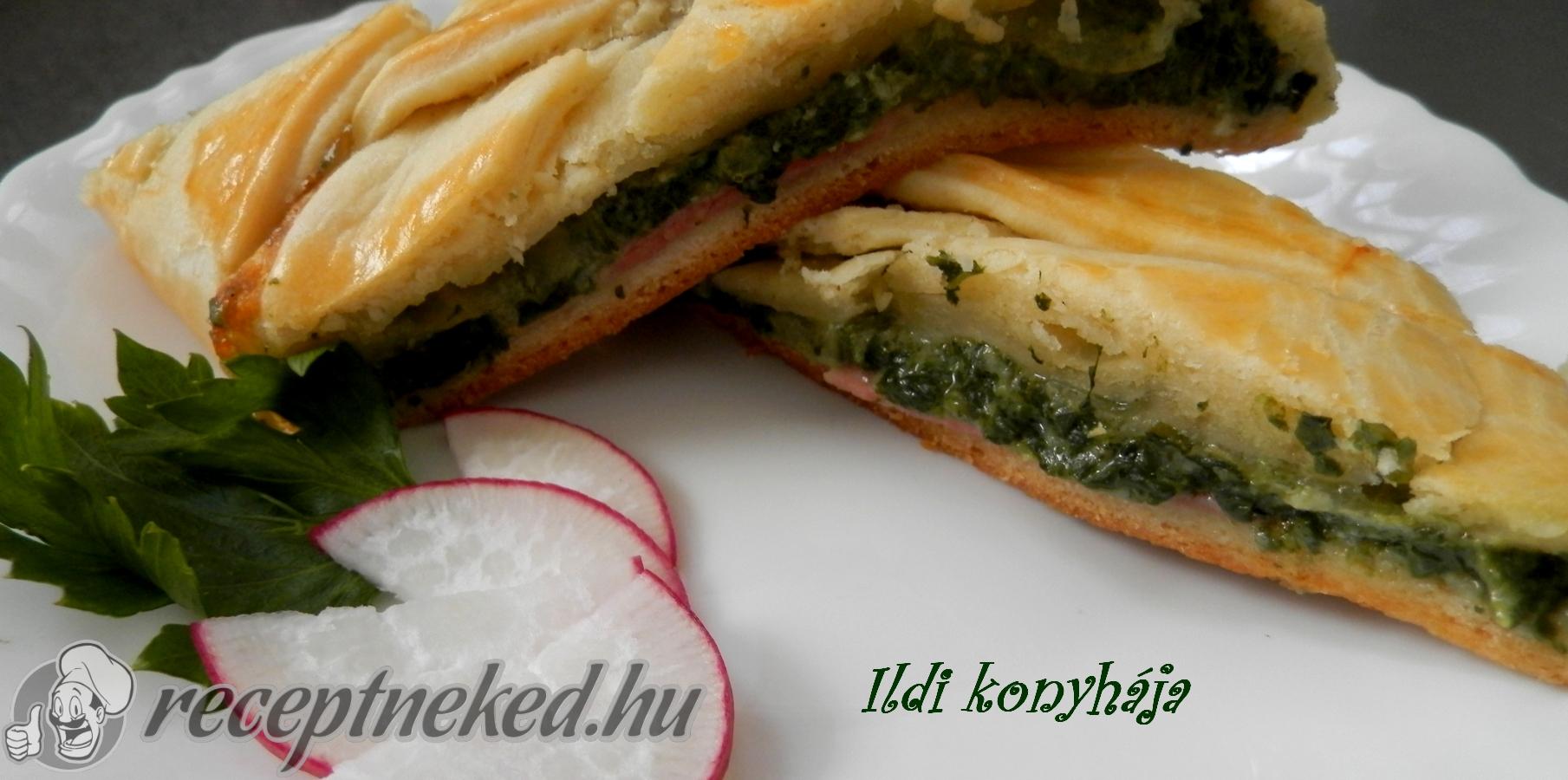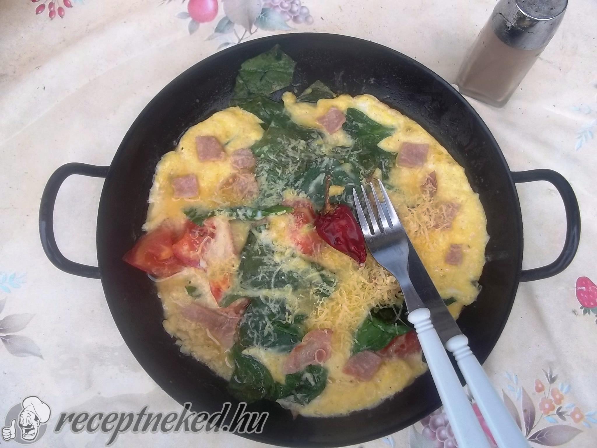 Ezután először keverjük hozzá az előzőleg megfőzött és apróra vágott spenótot, a tojássárgát, majd a felkockázott gépsonkát is (közben kóstoljuk és ha szükséges ízesítsünk utána).