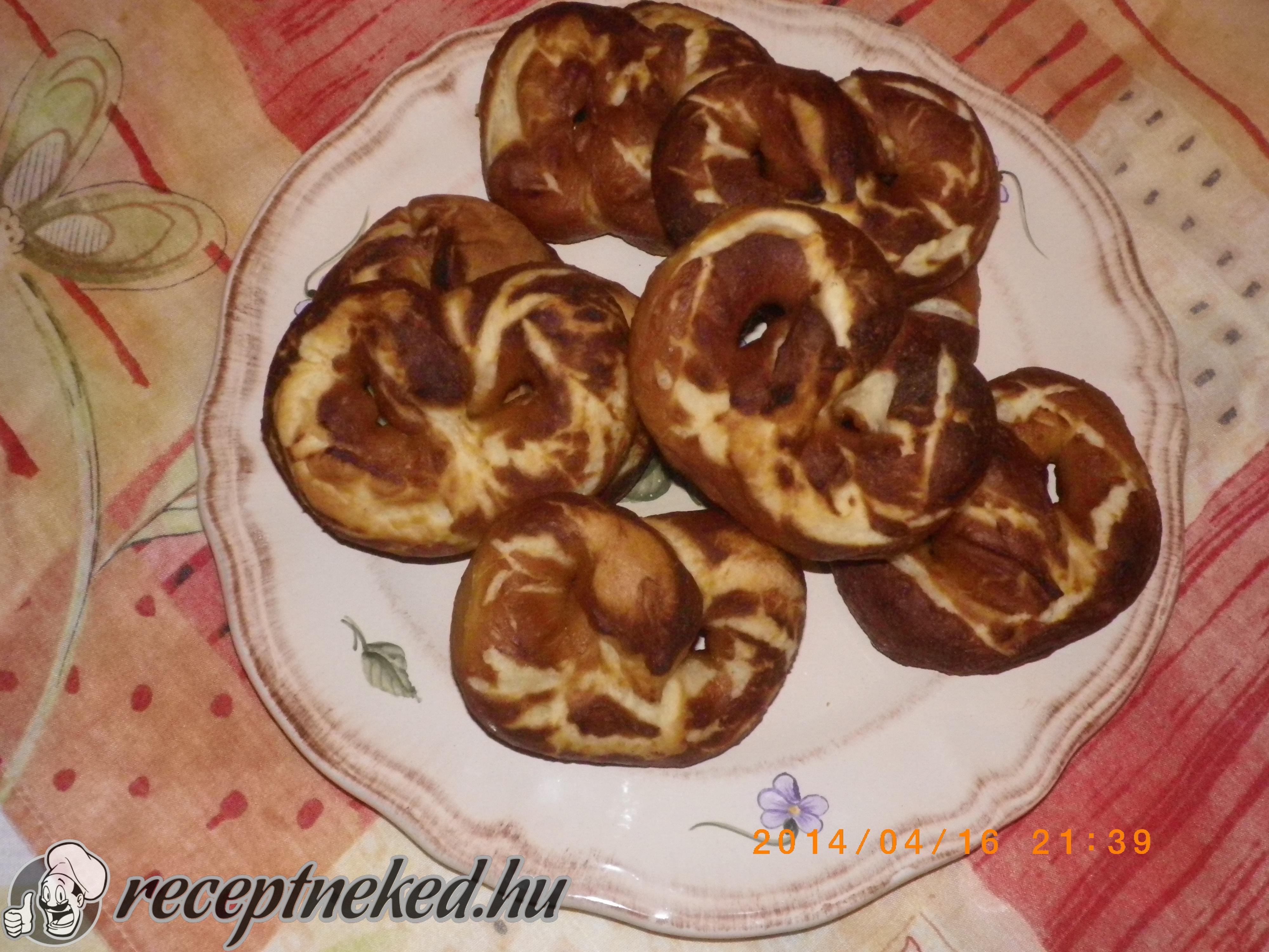 A gombócokból rudakat sodrunk és pereceket formázunk belőlük. A nyers pereceket egyesével a lobogó vízbe mártjuk 30 másodpercre, majd sütőpapírral bélelt tepsibe sorakoztatjuk 30 percig hideg helyen pihentetjük. Sütés előtt kicsit bevagdossuk a pereceket.