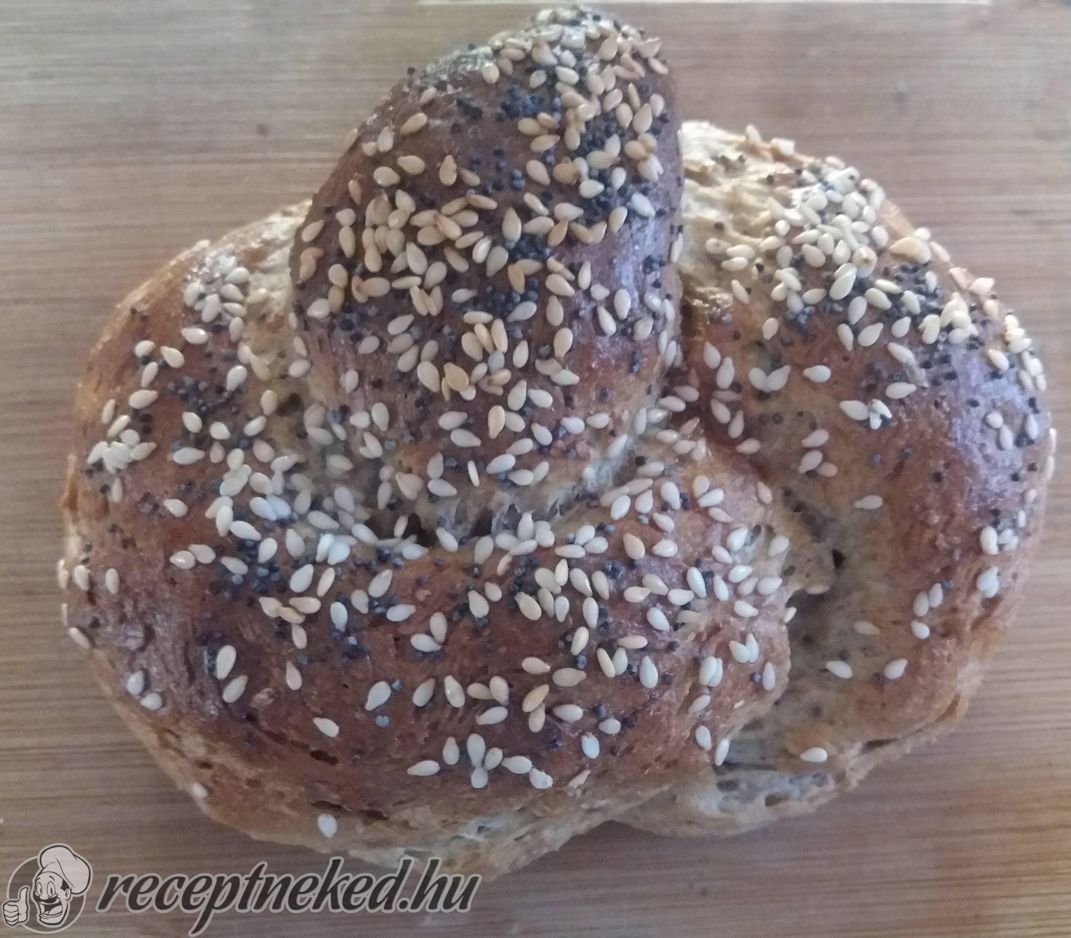 A formázott tésztadarabokat sütőpapírral bélelt tepsibe tesszük és további 20 percig kelesztjük. Ezután a tetejüket felvert tojással megkenjük, megszórjuk szezámmaggal, kevés mákkal és egy csipet sóval.