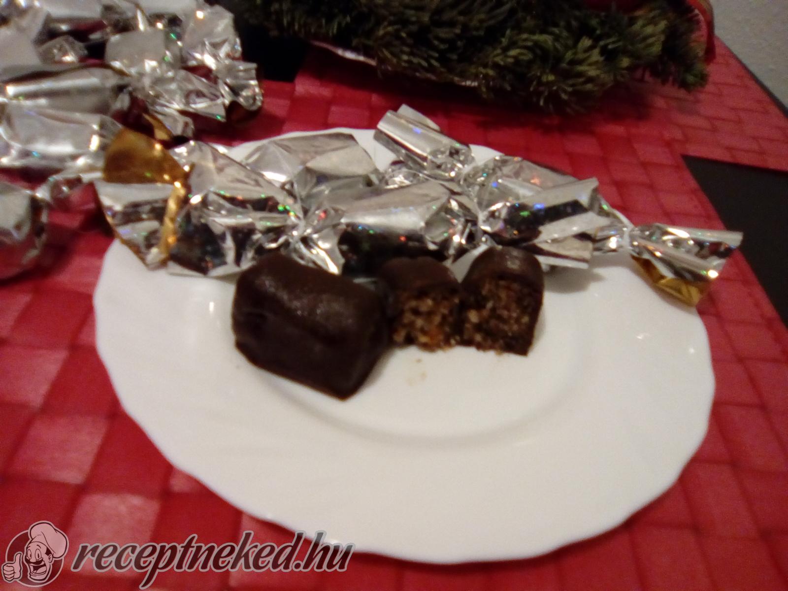Mártsuk bele a szaloncukrokat és a papírra visszatéve hagyjuk megkötni a csokoládét. Utána csomagolhatjuk.
