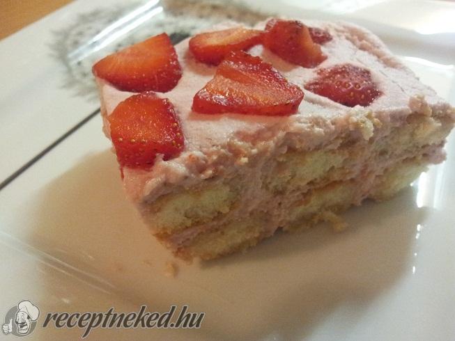 A krémhez az epret megmossuk, kicsumázzuk, és botmixerrel pürésítjük. Hozzákeverjük a mascarponét és a kemény habbá vert habtejszínt. A fehér csokit gőz felett megolvasztjuk, és azt is hozzáöntjük a krémhez. Ha kell, habverővel dolgozunk rajta egy kicsit, hogy a krém elég homogén és kenhető legyen. Apróra vágjuk és óvatosan hozzáforgatjuk a maradék epret.