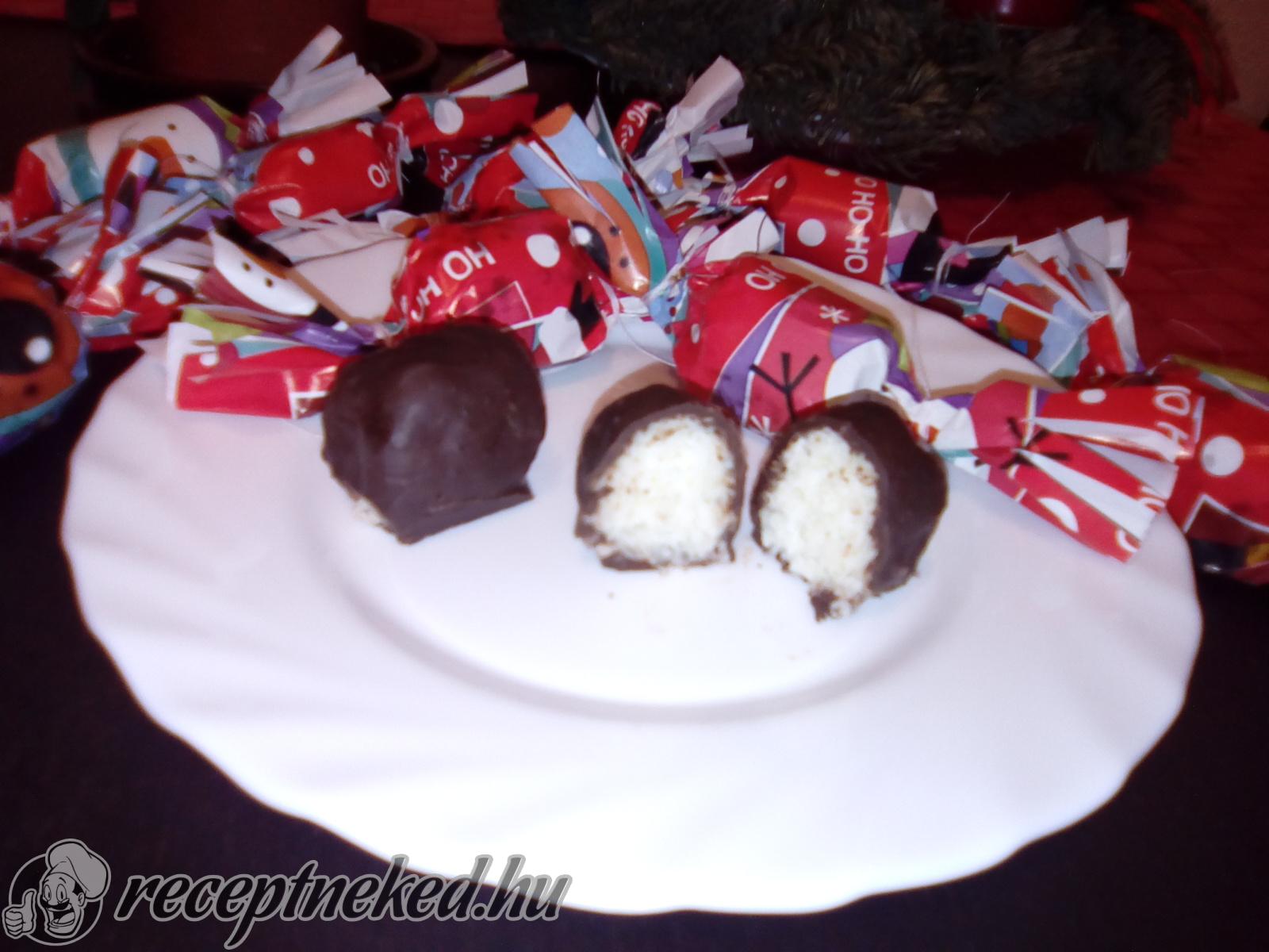 A szirupot még langyosan keverjük össze a kókuszreszelékkel, vigyázva hogy ne legyen túl híg, majd adjuk hozzá a felolvasztott fehér csokoládét és gyúrjuk jól össze. Rakjuk fél órára hűtőbe.