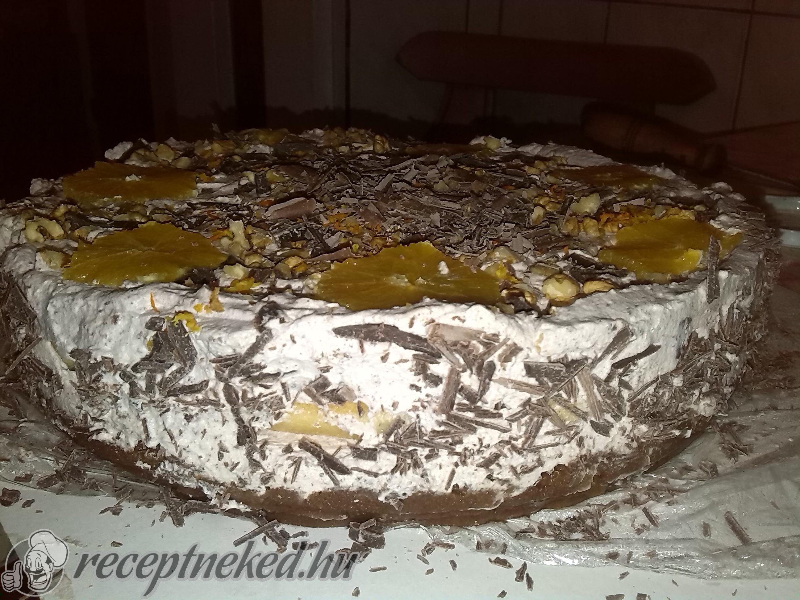A habtejszínt verjük fel kemény habbá, majd apránként, óvatosan hogy a hab ne nagyon törjön, szintén keverjük a csokis-tejfölös keverékhez.