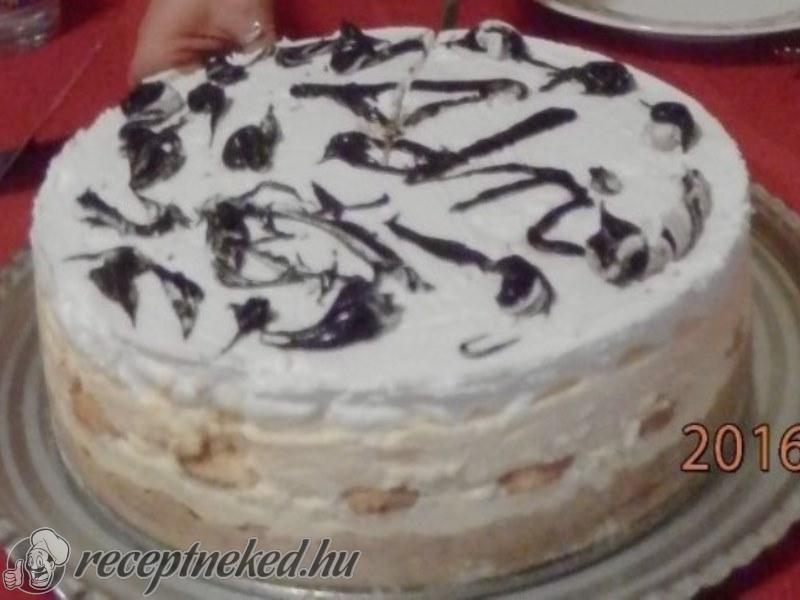 A tetejére simítjuk a tejszínhabot. Egy éjszakára hűtőbe tesszük, majd másnap szeletelés után tortadarával díszíthetjük.