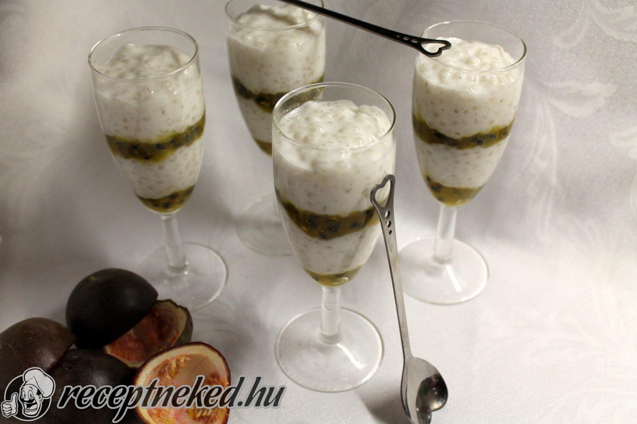 Ezt követően öntsd hozzá a kókusztejet, add hozzá a vaníliát, a sót és főzd 15-20 percig. Akkor jó, ha a gyöngyök átlátszóvá válnak. Húzd le a tűzről és add hozzá a cukrot.
