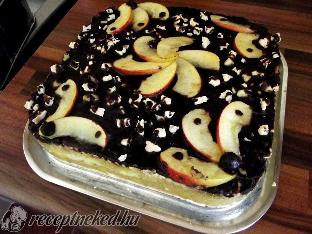 A mogyorókrémes tejszínt kenjük a málnás pudingra egyenletesen. A tetejére reszelhetünk csokit.