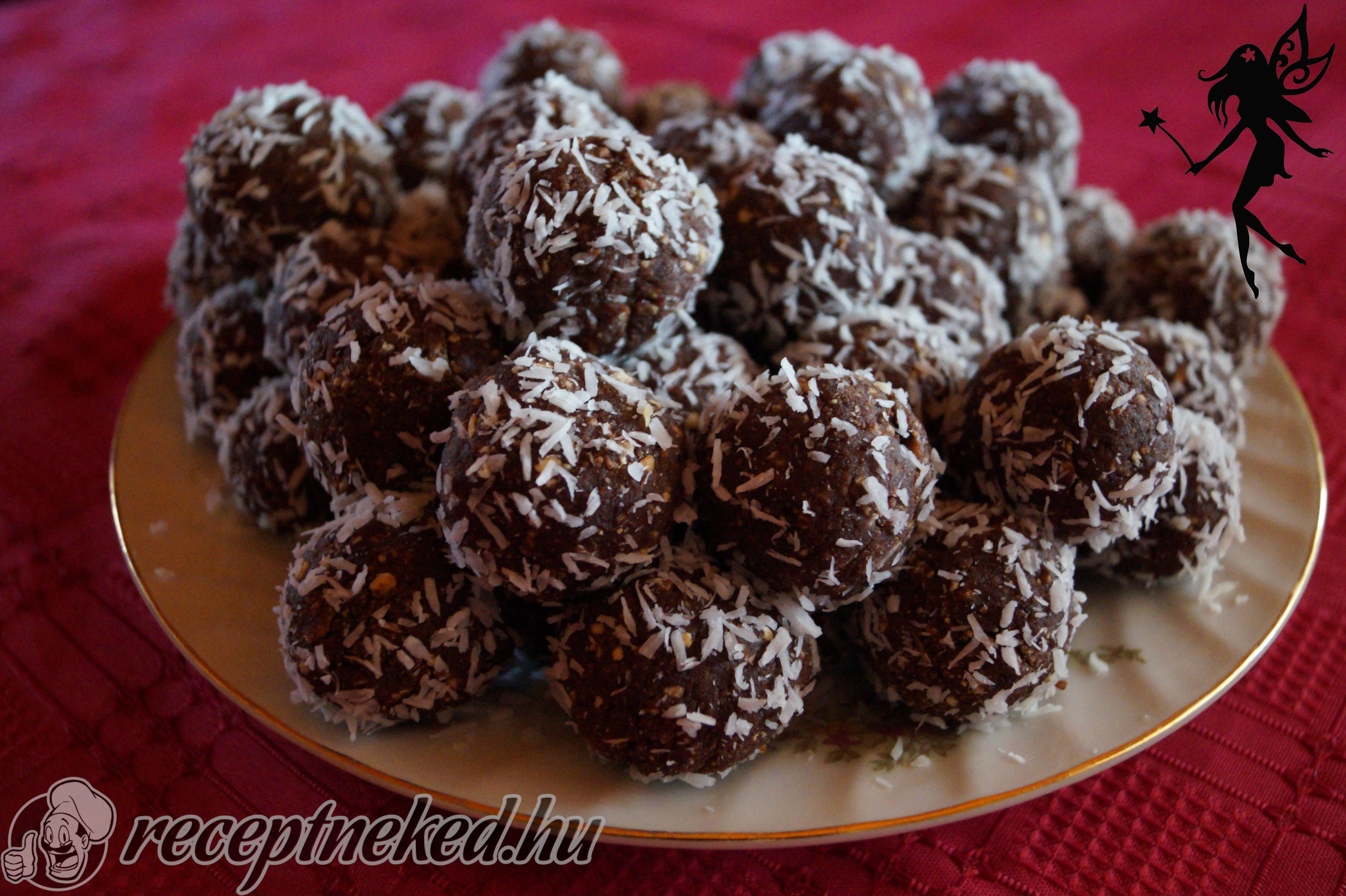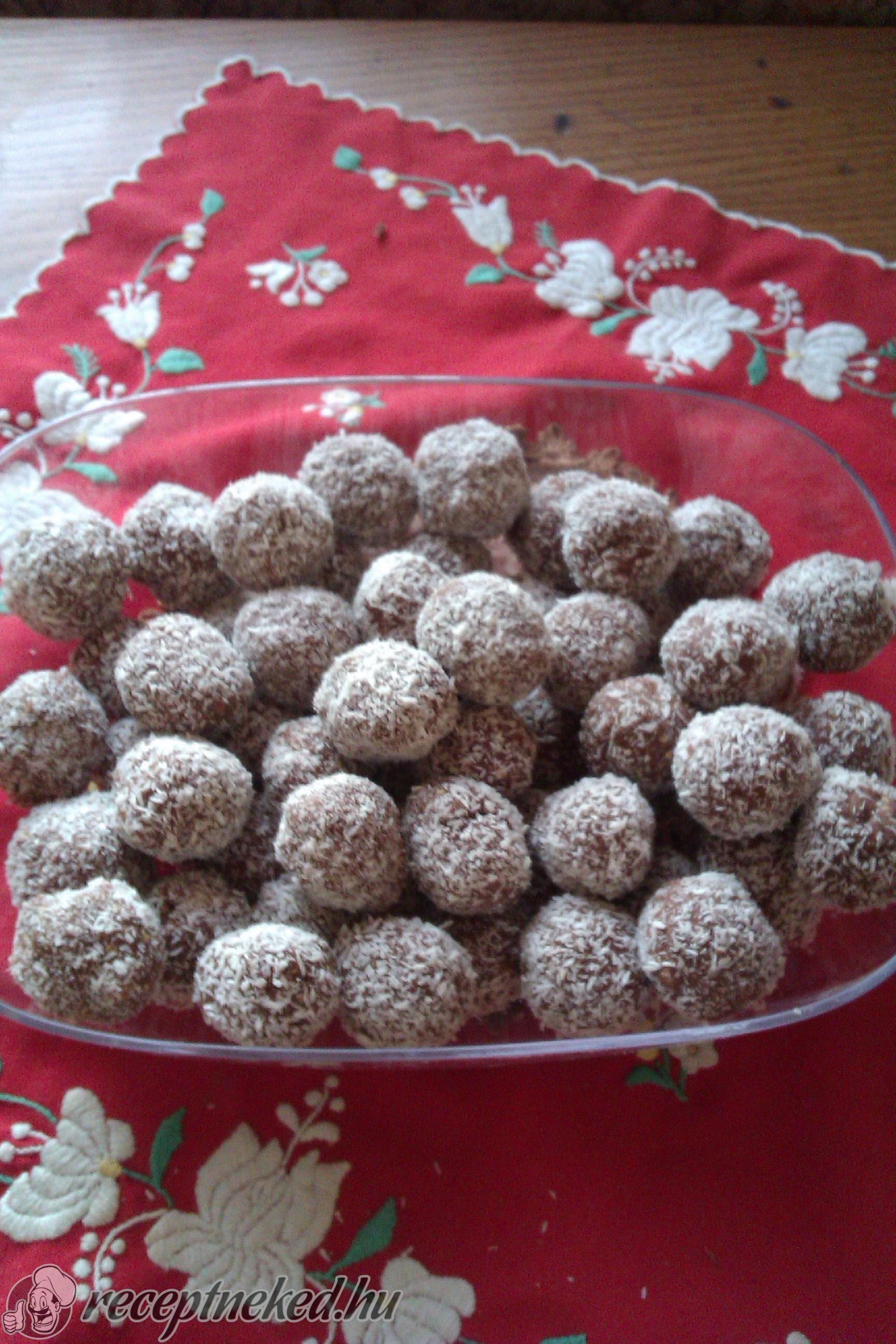 Kis golyókat formázunk a masszából, majd kókuszreszelékben megforgatjuk.
