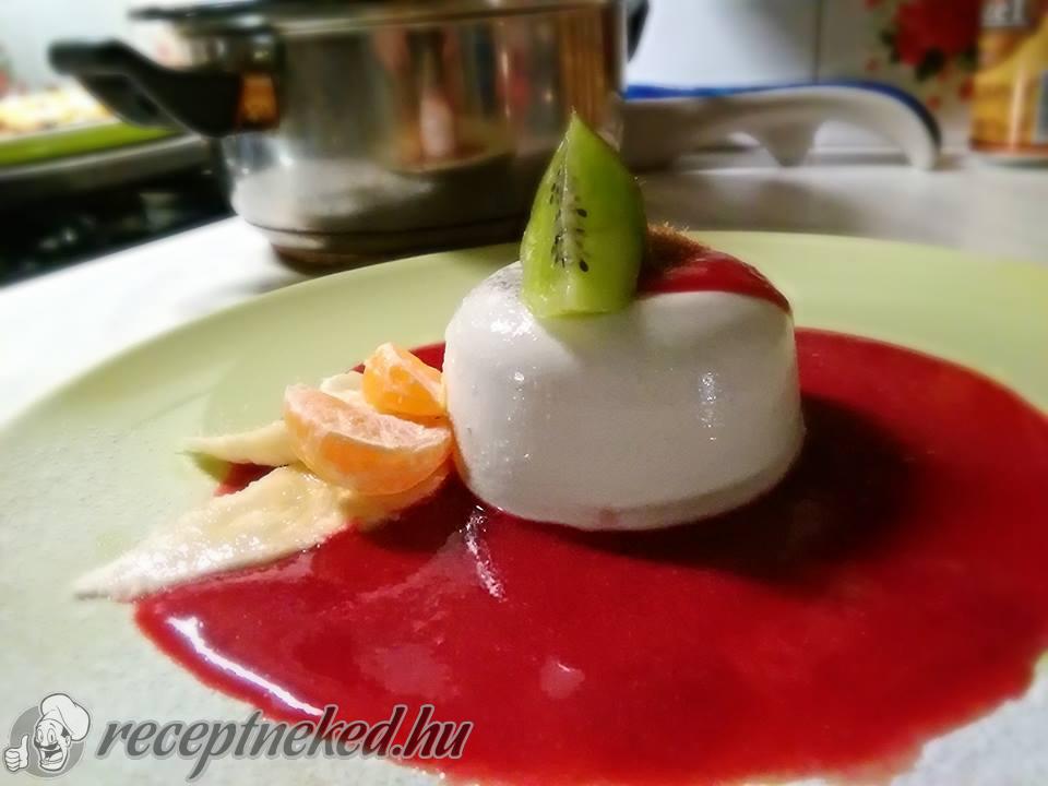 Körbeöntöm a hideg málnaszósszal és gyümölcsökkel körítem.:)