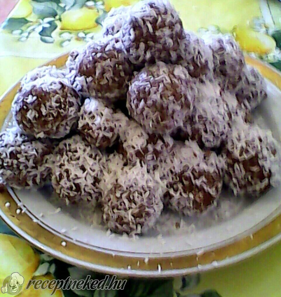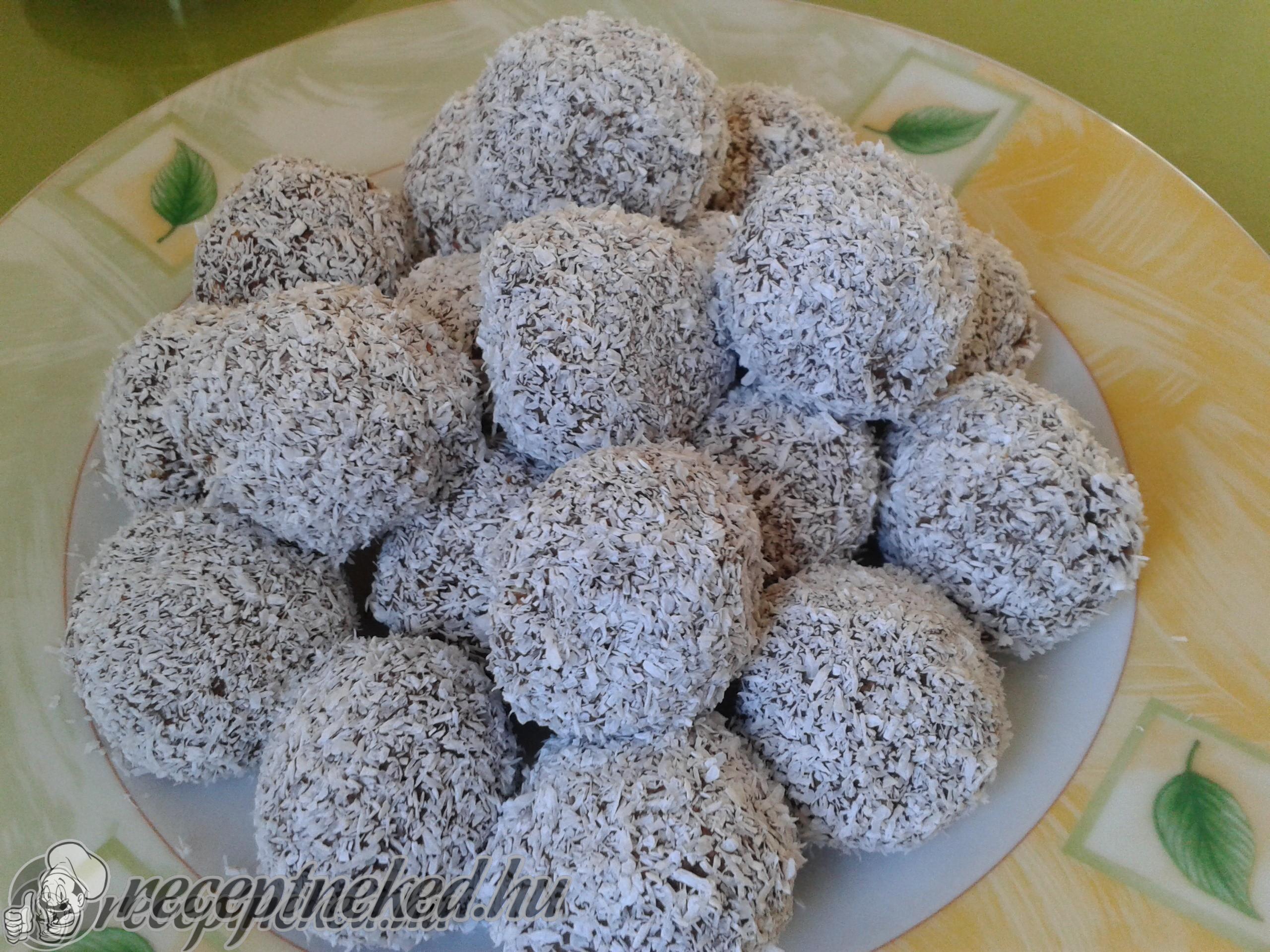 A kész masszából golyókat formázunk és kókuszreszelékben megforgatjuk.