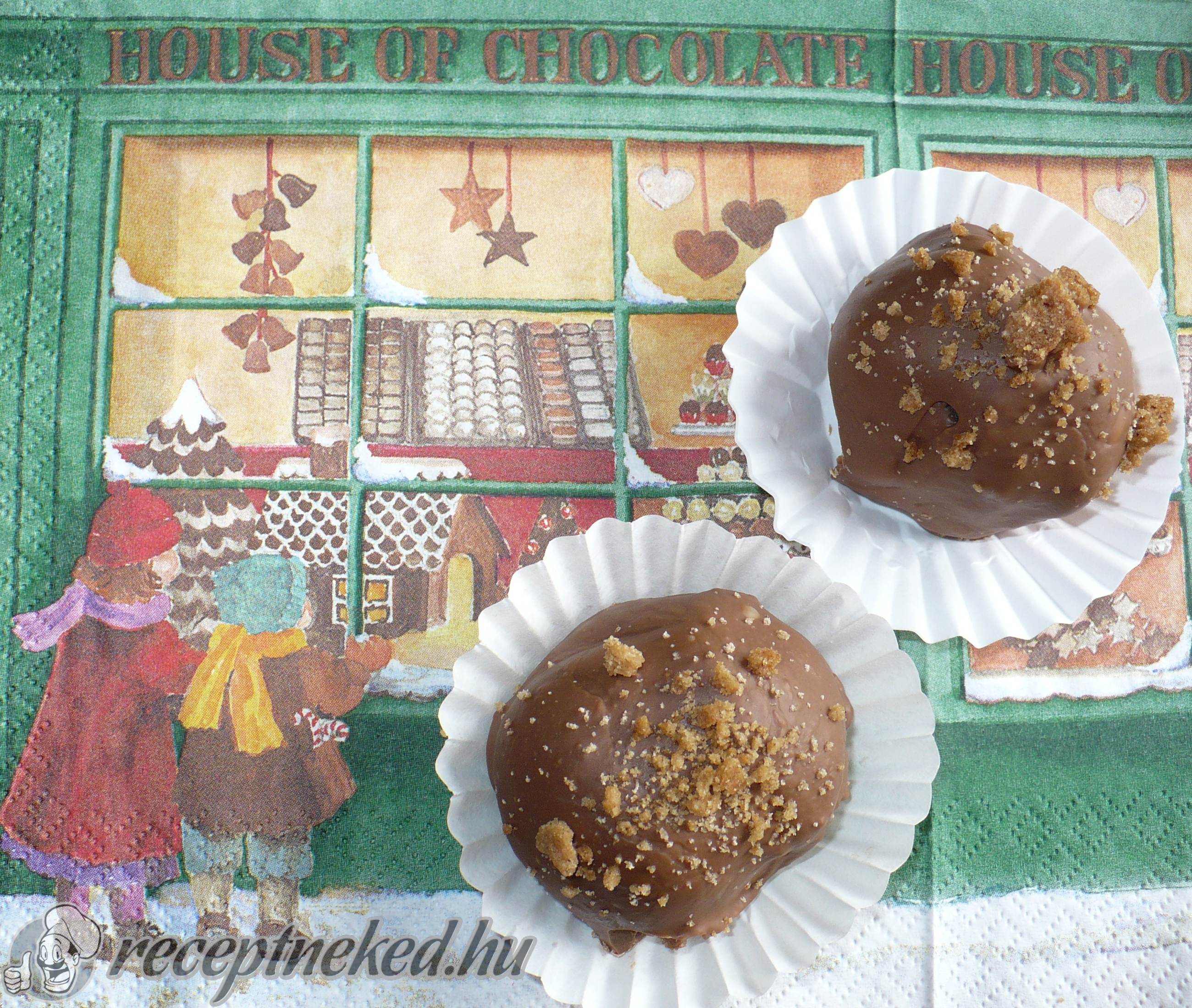Vízgőz felett megolvasztjuk a csokit és megmártjuk benne a sütiket, majd kekszmorzsával megszórjuk