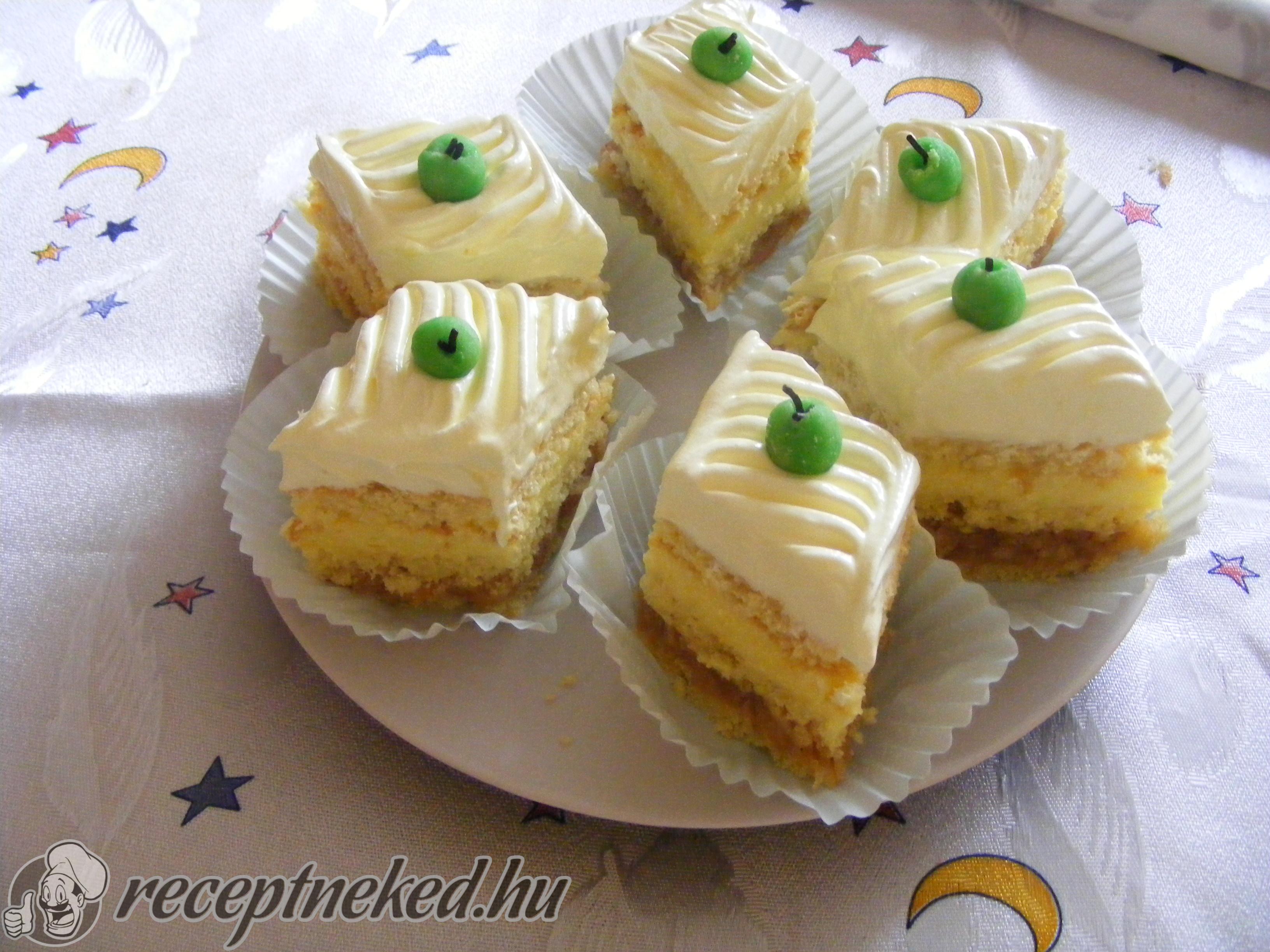Az almát megmossuk, a csumáját kivágjuk és fél centis karikákra szeleteljük. A lilahagymát megtisztítjuk és ugyancsak karikázzuk.