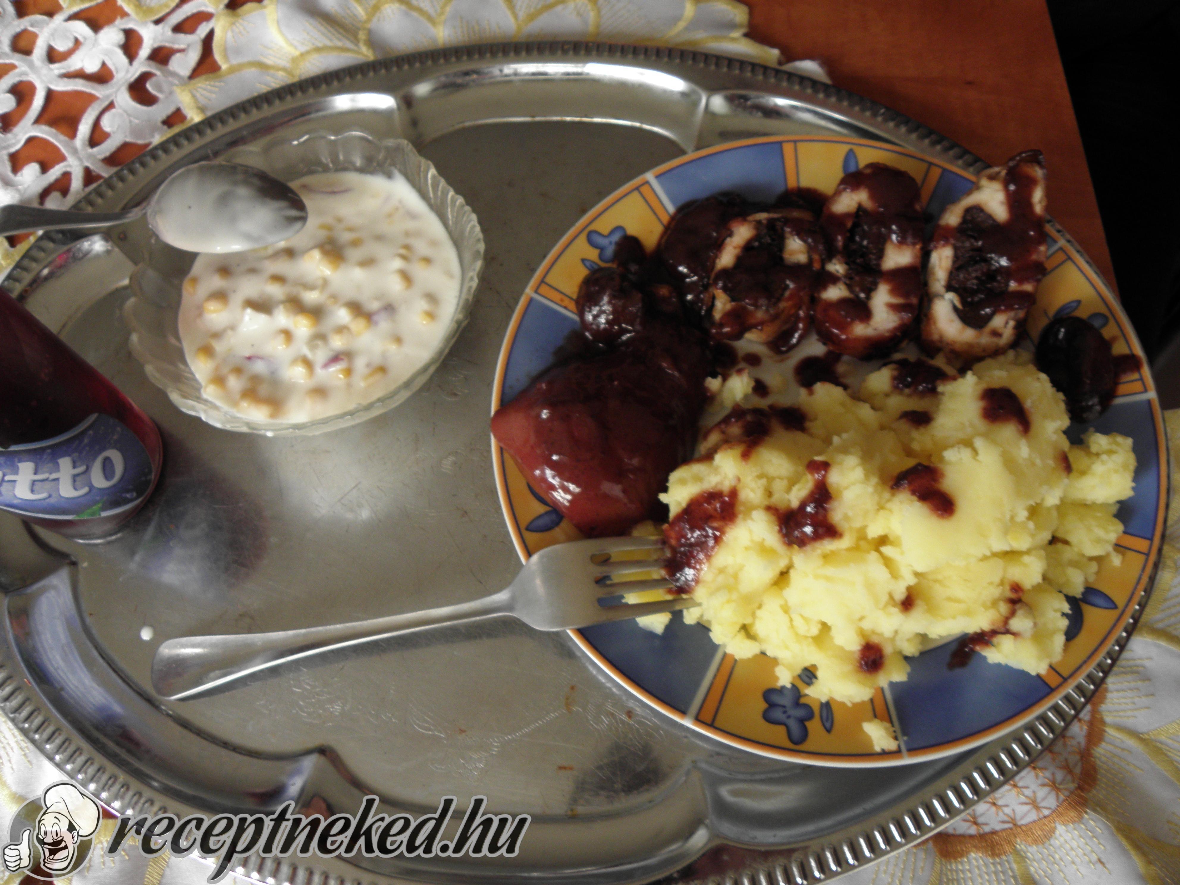Az elkészült húshoz tálaljuk a burgonyás köretet.