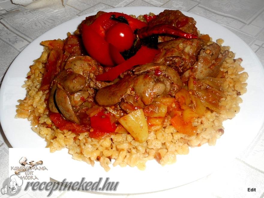 Tálaláskor fölaprított petrezselyemmel meghintjük. Tarhonya illik hozzá köretnek.