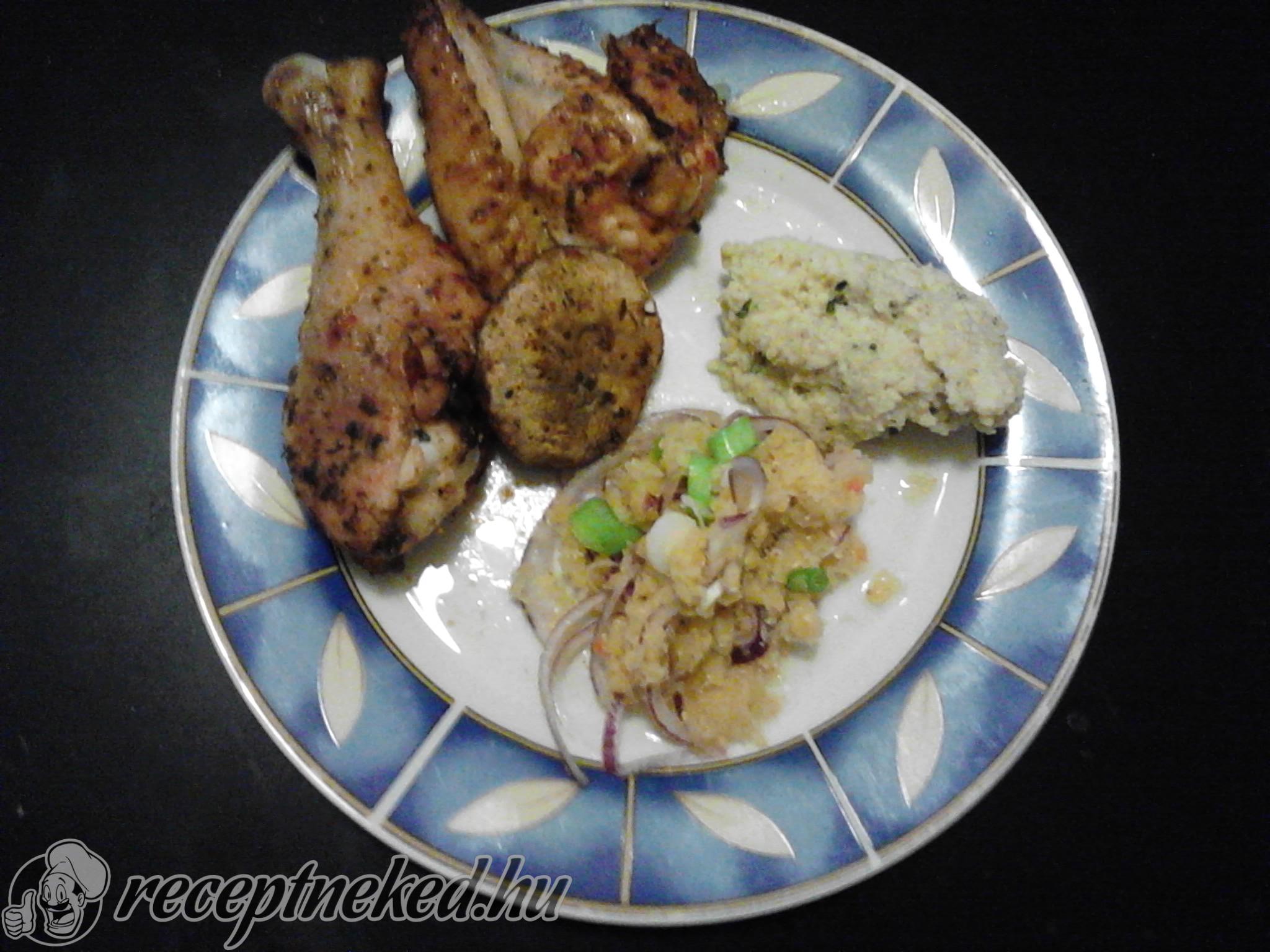 Ha szeretnénk még pikánsabbá tenni, a sütés előtt a húst kevés citromlével vagy lime-lével is bedörzsölhetjük. A kölest ízlés szerint helyettesíthetjük bulgurral vagy rizzsel, a lencséhez pedig adhatunk egy kevés apróra vágott friss petrezselymet is.