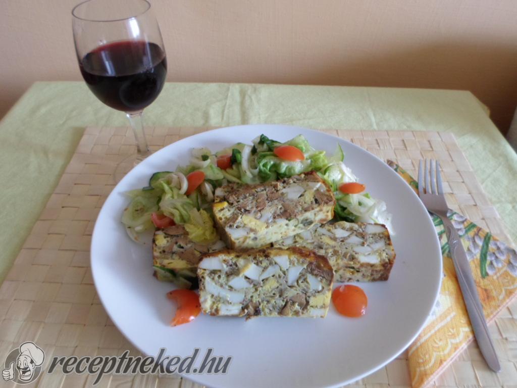 A nyers tojásokat felverjük, megfűszerezzük, beletesszük a zúzott fokhagymát, és ráöntjük a májas keverékre.