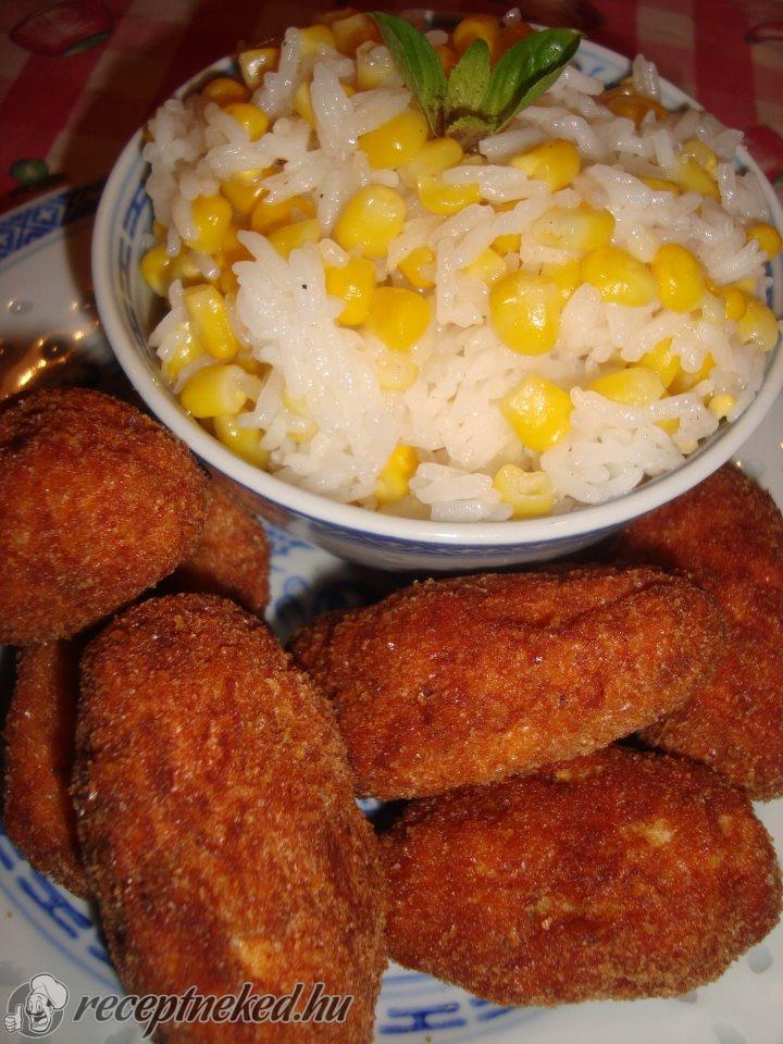 A csirkemell rolót a frissen elkészült kukoricás rizzsel tálaljuk.