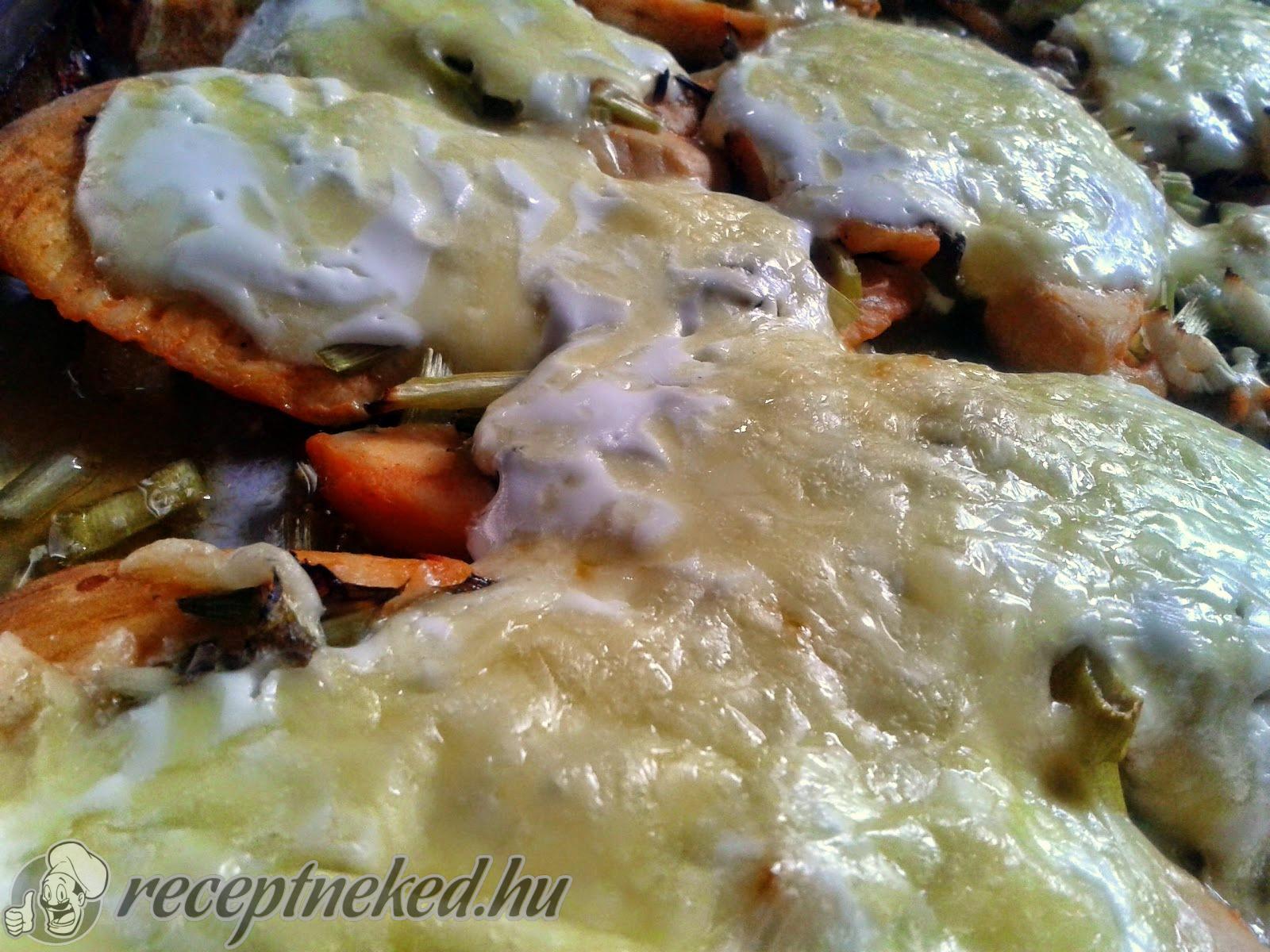 A csirkemellet 4 szeletre vágom, kissé kiklopfolom, majd sózom és borsozom.