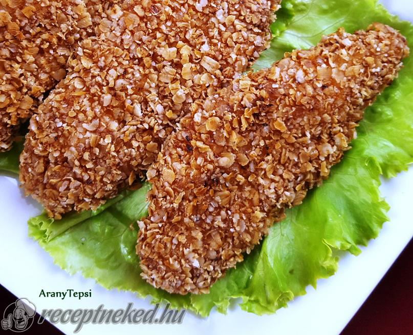 [box style=”info”]A legutóbbi vásárlás alkalmával megláttam az üzletben a zabpehelylisztet és gondoltam kipróbálom. Zabpehely az volt itthon, így a kettő kombinálásával készítettem el ezt a húsos fogást. Ízre kicsit más, mint a hagyományos rántott hús, de egy kis friss salátával vagy főzelékkel remek ebéd vagy vacsora.[/box]
