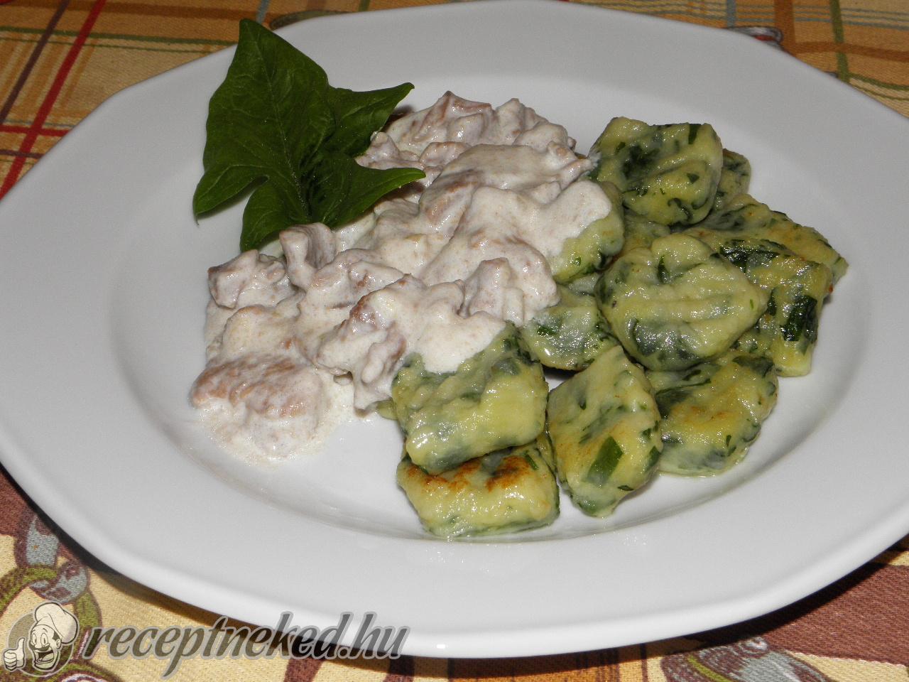 [box style=”info”]Párolt rizst vagy kifőtt tésztát kínálhatunk mellé, én most spenótos gnocchival tálaltam.[/box]