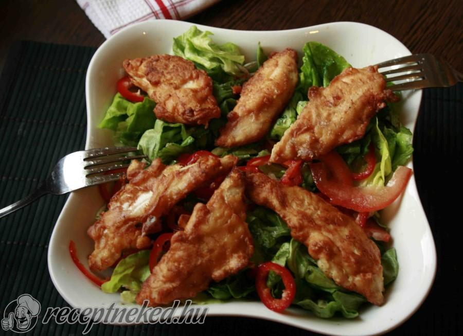 A húscsíkokat megforgatom lisztben, majd a tejfölös masszában és forró olajban aranybarnára sütöm.