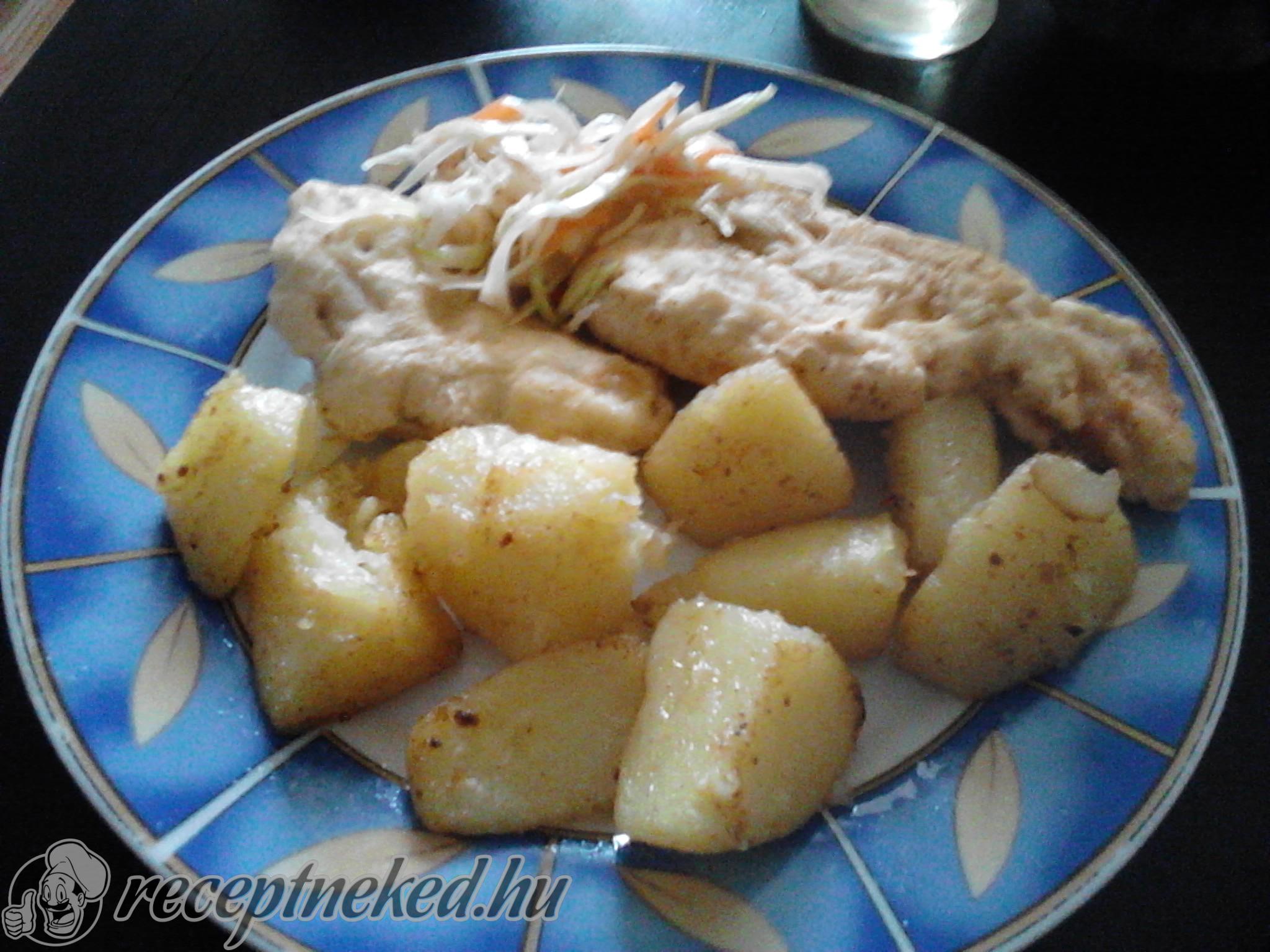 A burgonyát nagyobb cikkekre vágjuk, majd sós vízben félig előfőzzük. Ezután forró olajban aranybarnára sütjük.
