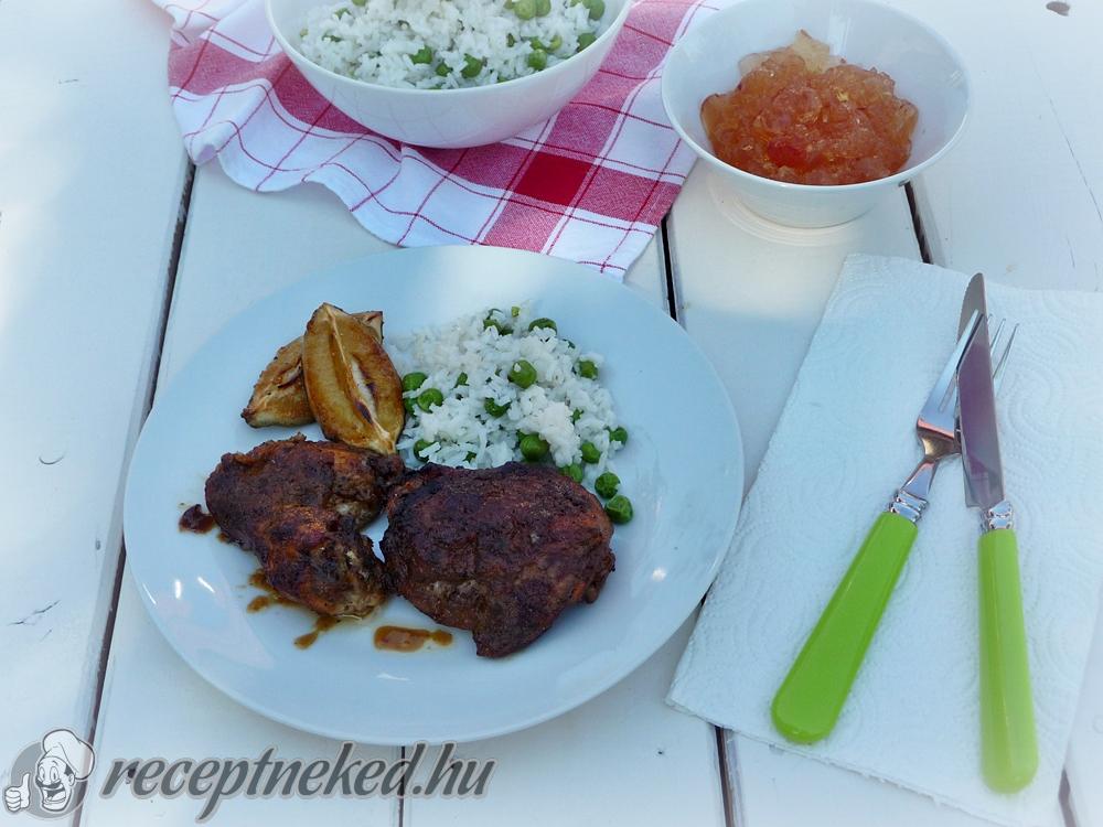Rizi-bizivel vagy másmilyen választott körettel tálaljuk. Ízvilágban jól illik hozzá a mangósalsa.