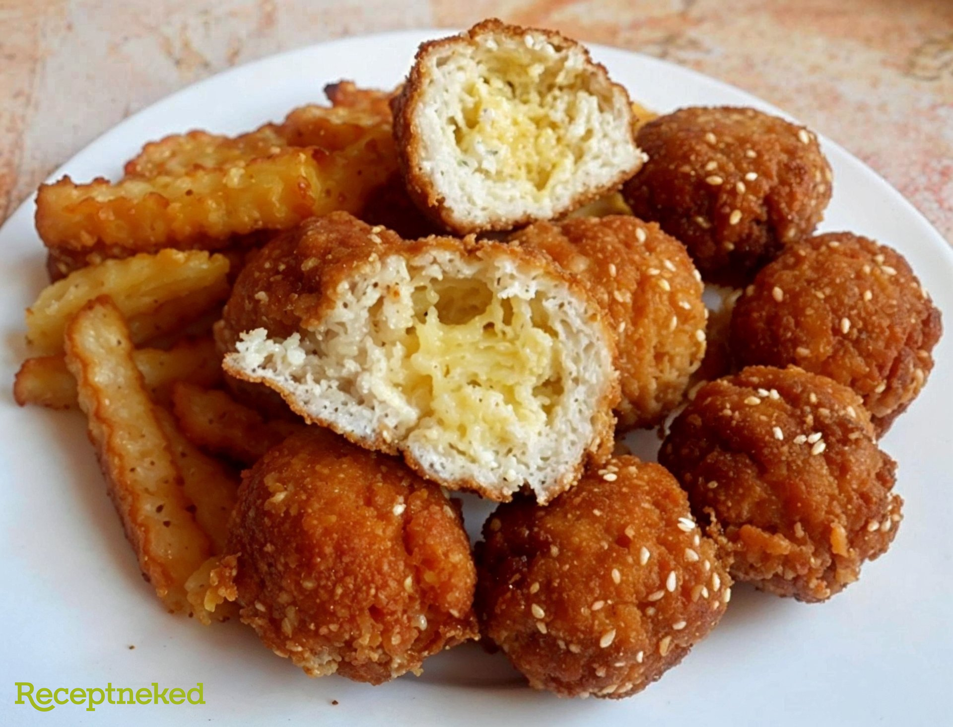 Egy magasabb edényben olajt forrósítunk és közepestől picit kisebb lángon, kb 7-9 perc alatt szép barnára sütjük a golyókat.