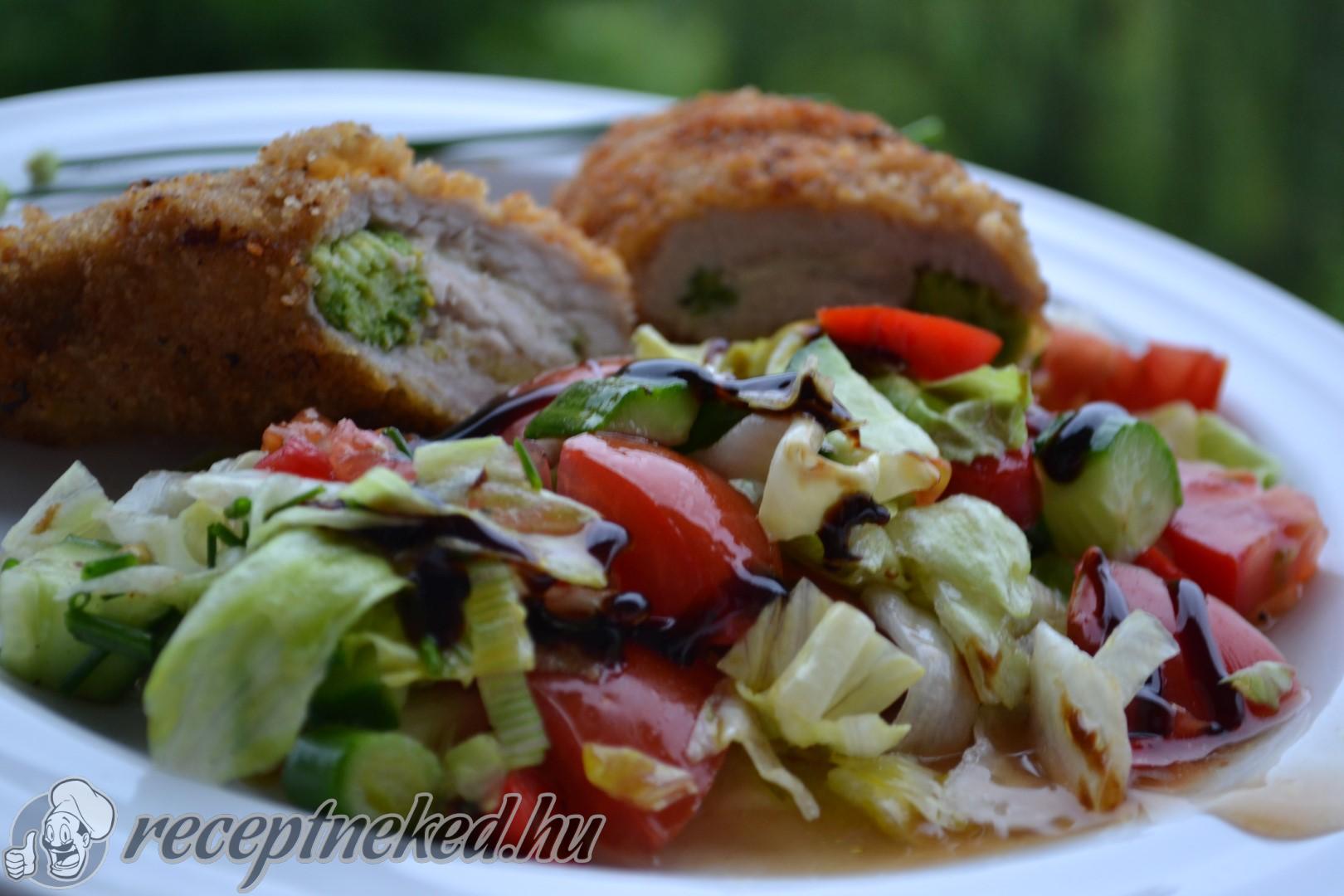 1 óra elteltével leszűrjük a brokkolit és szeletelt baconbe tekerjük. Ezután ezeket is a pulykamell szeletek mellé tesszük a tepsibe.