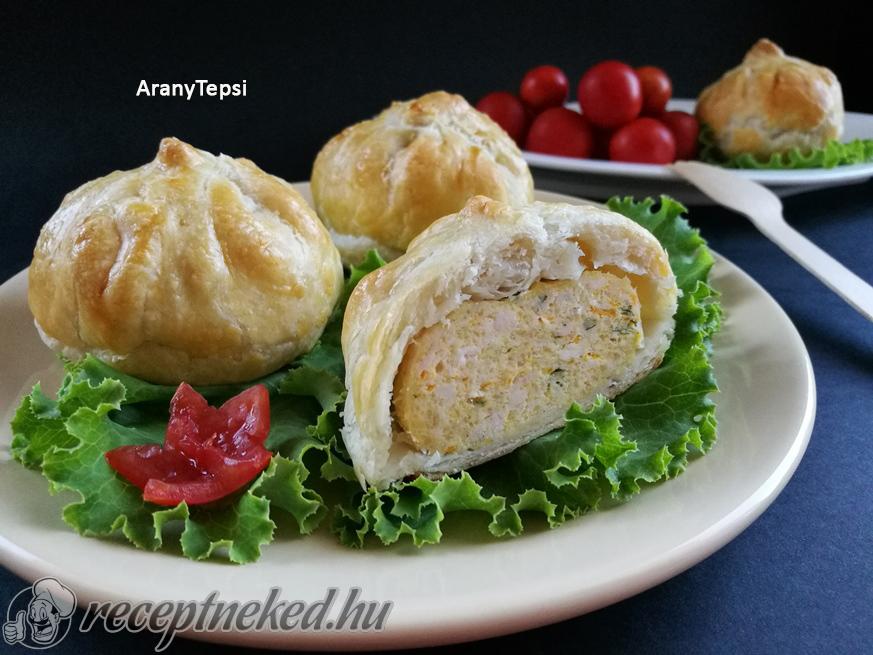 [box style=”info”]Egyszerű húsos fogás egy kevés maradék leveles tészta felhasználására. Akár melegen, akár hidegen is fogyasztható, de hidegtálon is megállja a helyét. Friss salátával vagy habos krumplipürével is kínálhatjuk.[/box]