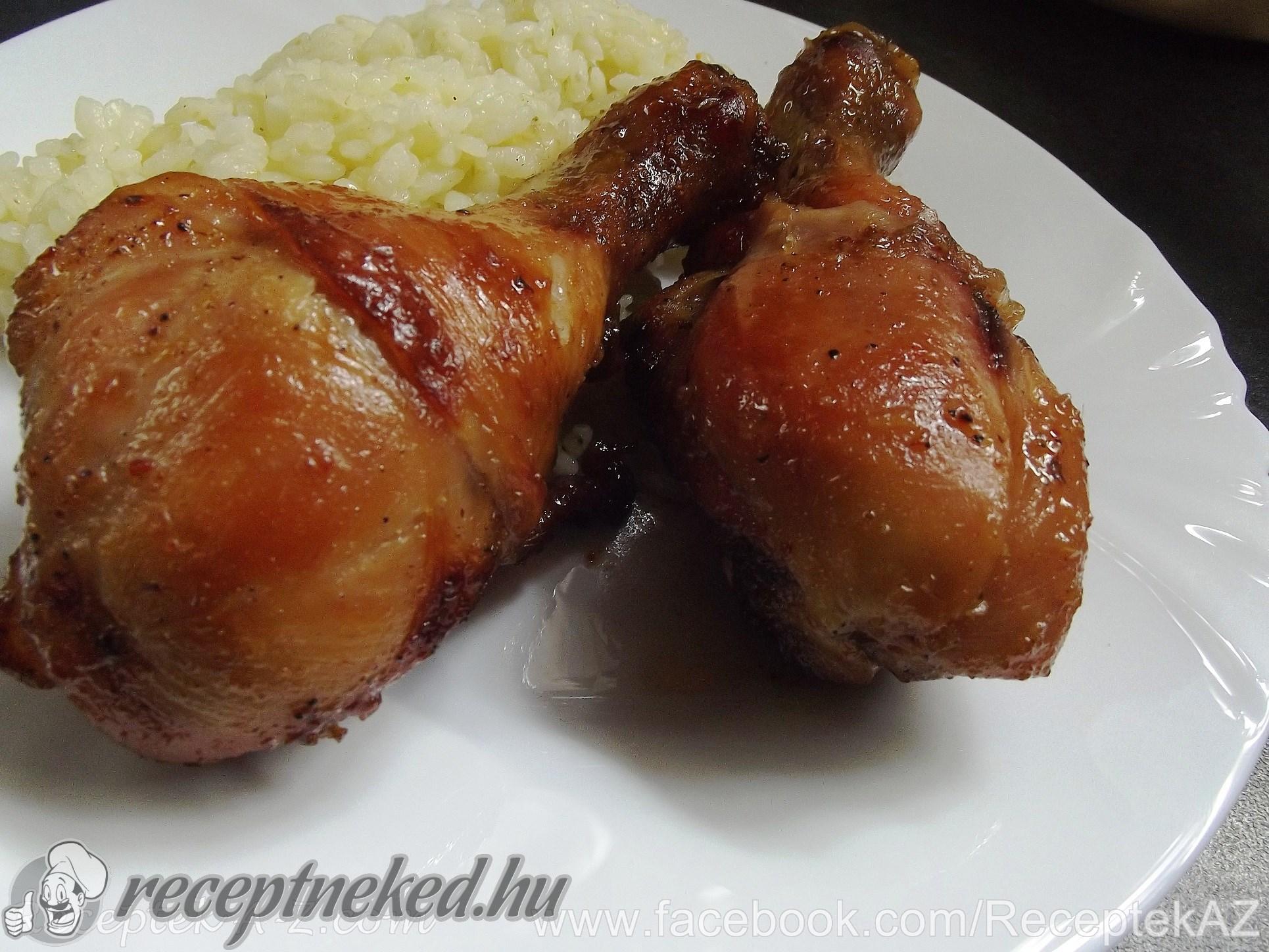 Alufóliával lefedve előmelegített sütőben kb. 1 órát sütjük majd még kicsit rápirítunk. Főtt rizzsel tálaljuk.