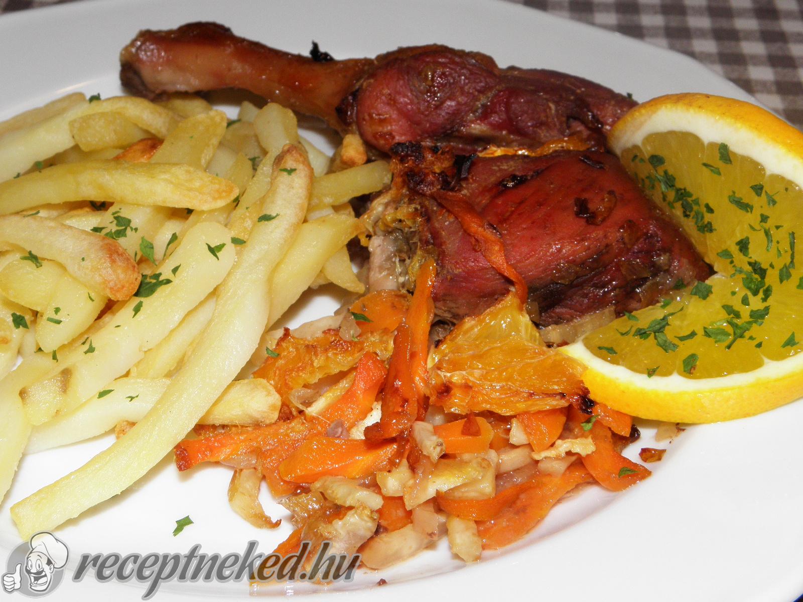 Előmelegített, 190 fokos sütőben 80 percig sütöm. Közben párszor meglocsolom a saját levével.