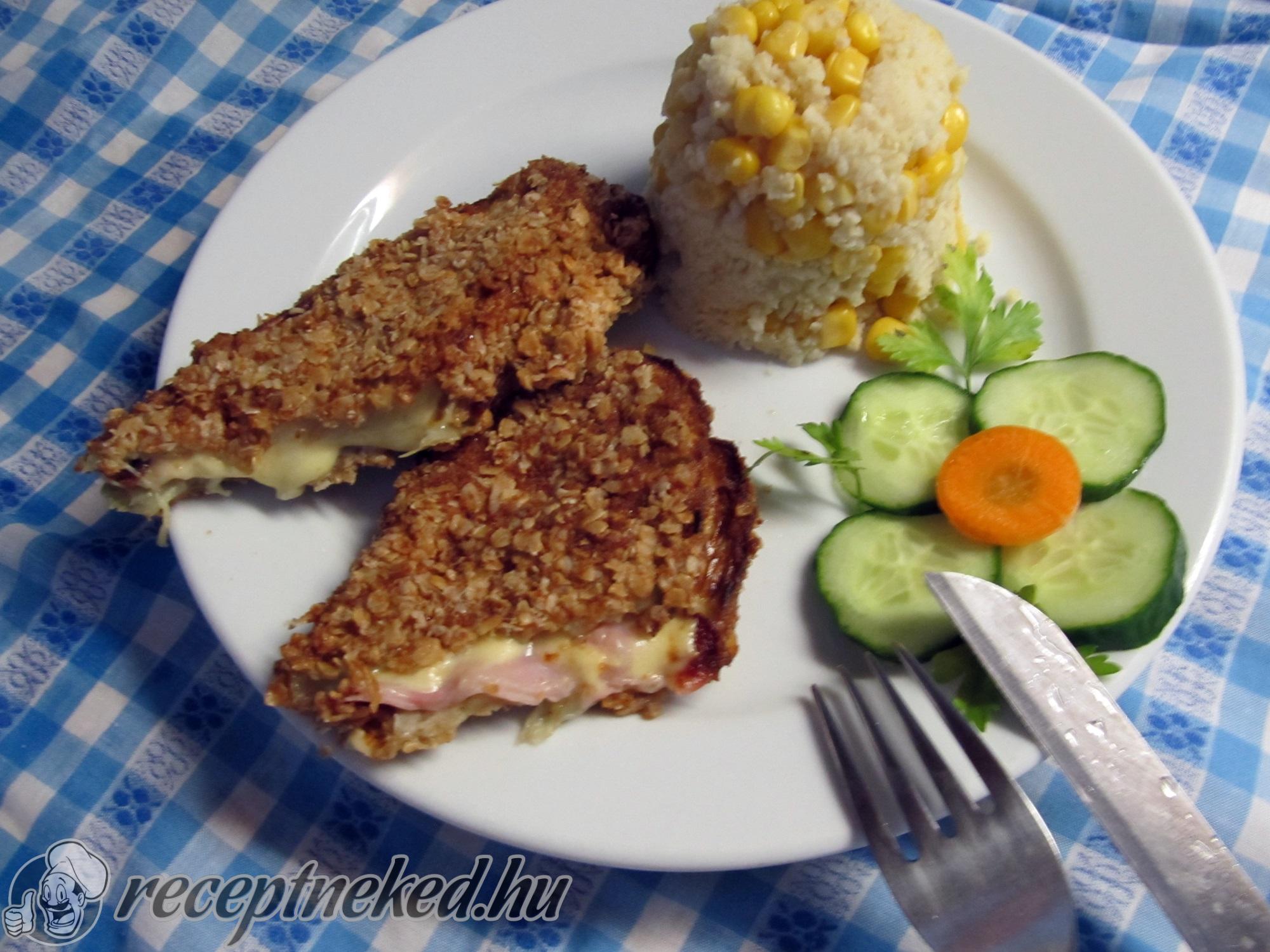 A panírozást duplán kell elvégezni, hogy a sajt biztosan ne folyjon ki a süléskor, azaz: liszt, tojás, morzsa, tojás, morzsa sorrendben.