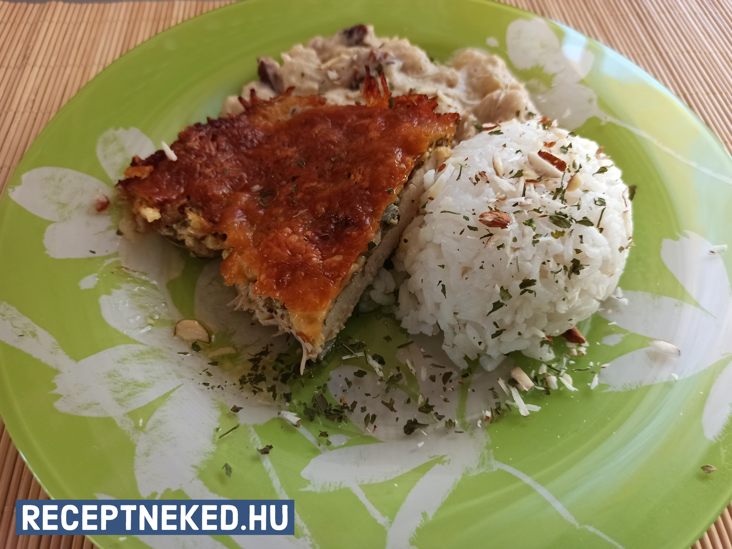 Utána kifordítjuk a formából egy tepsire, visszatoljuk a sütőbe és megpirítjuk még a bacont.