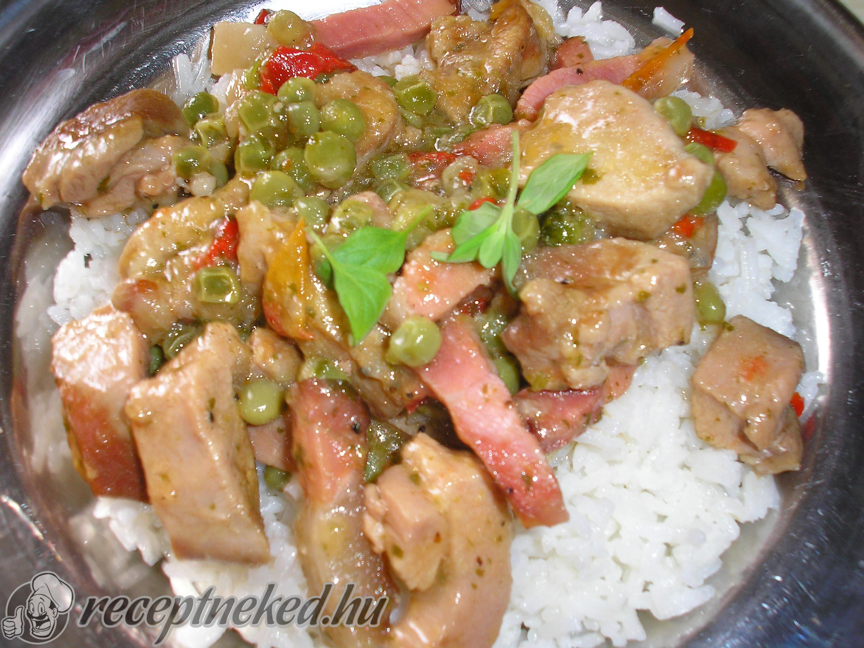A felforrósított vajon hirtelen átpirítjuk minden oldalról a kockára vágott pulykahúst. Felöntjük a borral, fűszerezzük és puhára pároljuk (még maradjon leve). Hozzáadjuk a cikkekre vágott gombát, karikára vágott póréhagymát és készre főzzük pár perc alatt.